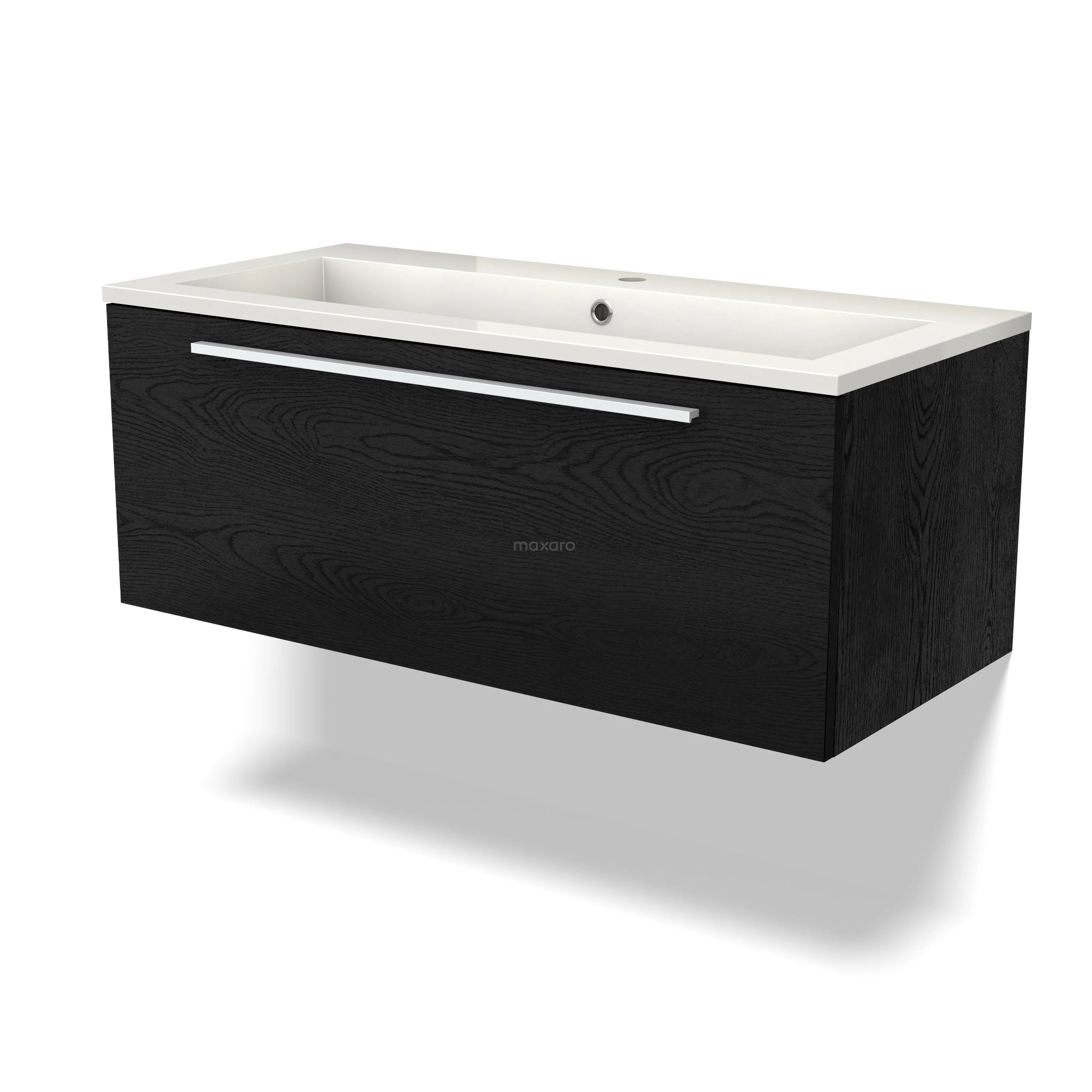 Modulo Waschtische | 100 cm Schwarze Eiche Flach front Mineralguss 1 Schublade