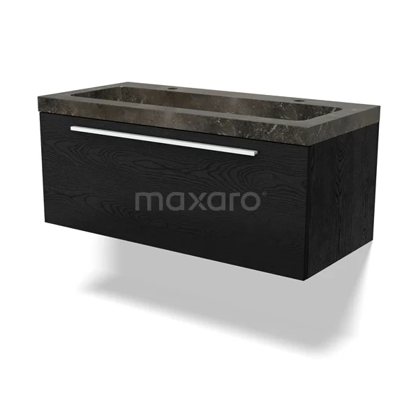 Modulo Waschtische | 100 cm Schwarze Eiche Flach front Naturstein 1 Schublade