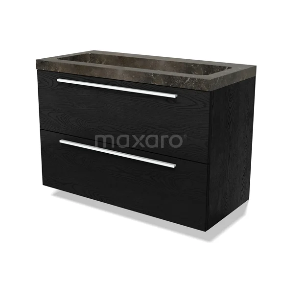 Modulo Waschtische | 100 cm Schwarze Eiche Flach front Naturstein 2 übereinanderliegende Schubladen