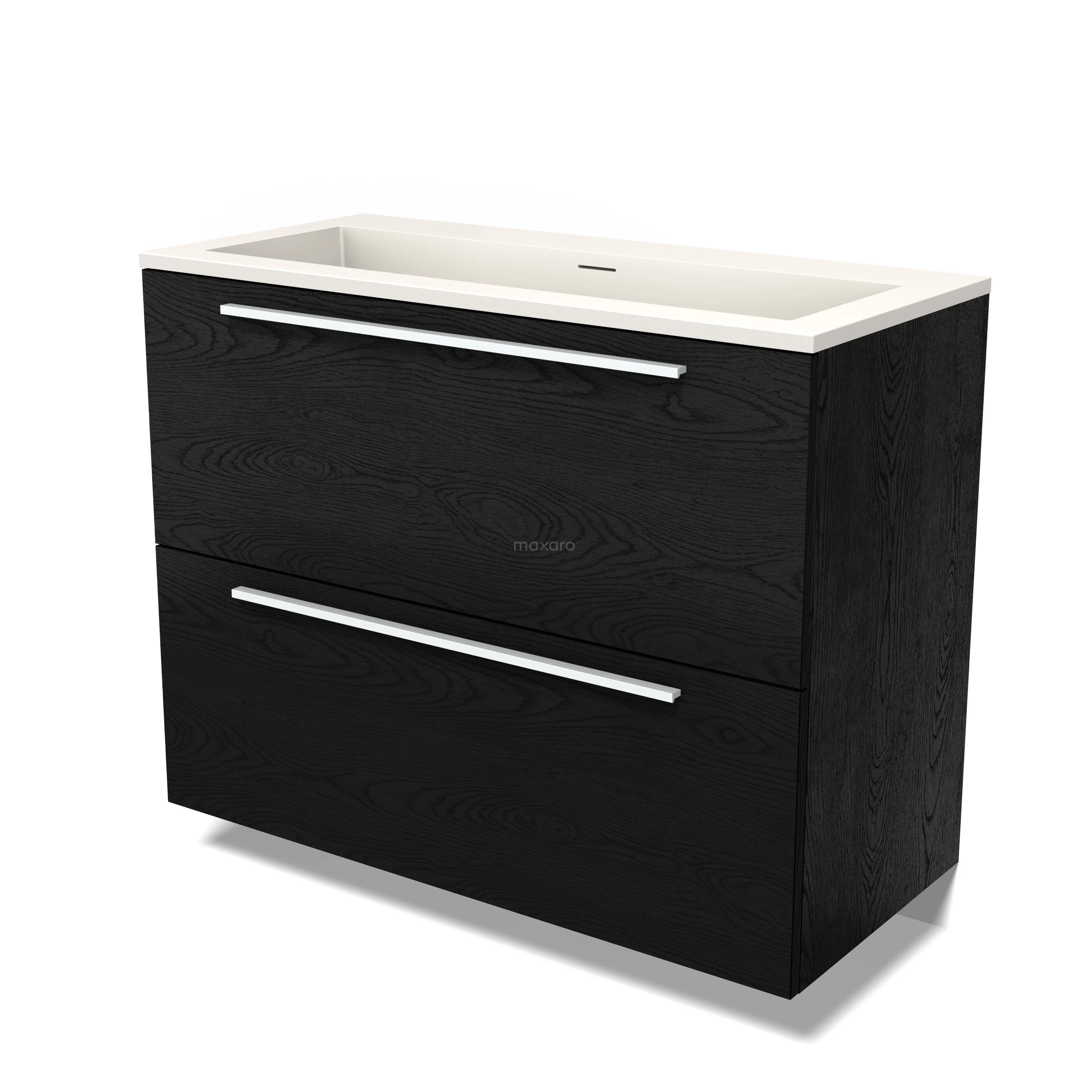 Modulo Waschtische | 100 cm Schwarze Eiche Flach front Solid Surface 2 hohe Schubladen übereinanderliegend