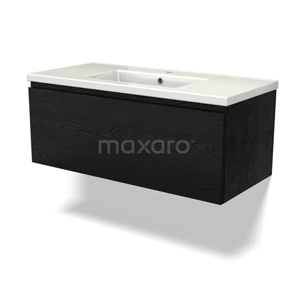 Modulo Waschtische | 100 cm Schwarze Eiche Grifflos front Keramik 1 Schublade