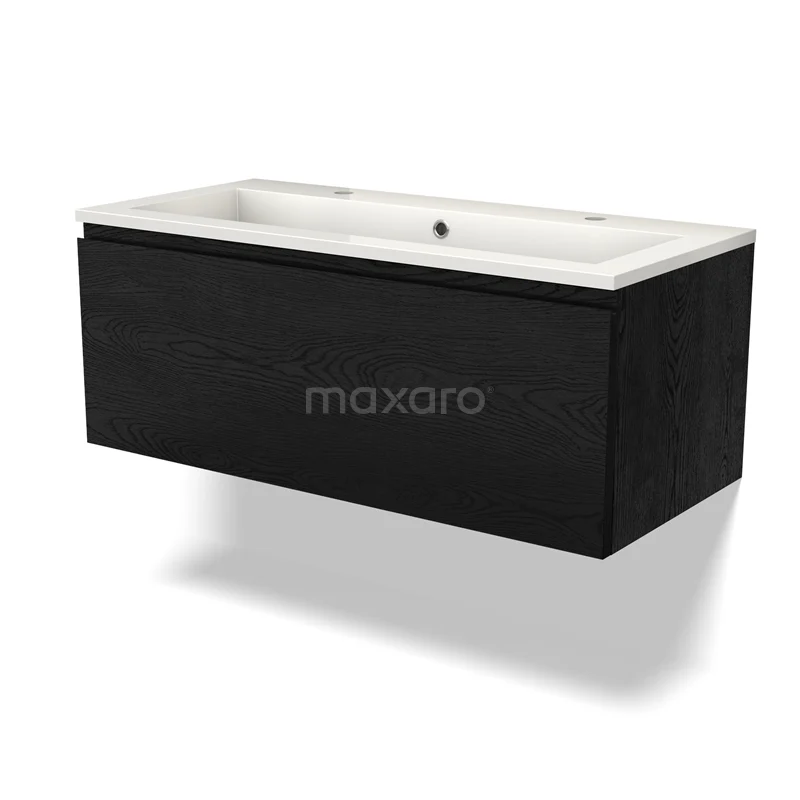 Modulo Waschtische | 100 cm Schwarze Eiche Grifflos front Mineralguss 1 Schublade