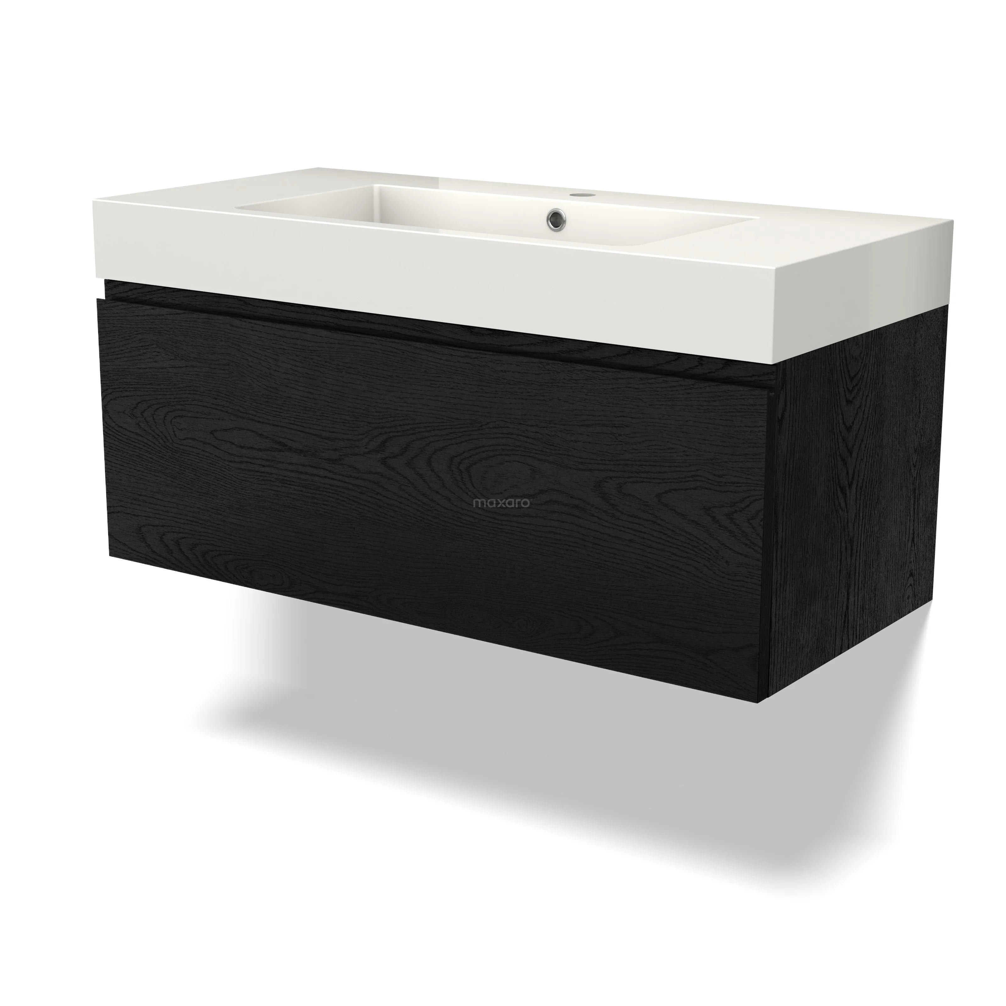 Modulo Waschtische | 100 cm Schwarze Eiche Grifflos front Mineralguss 1 Schublade
