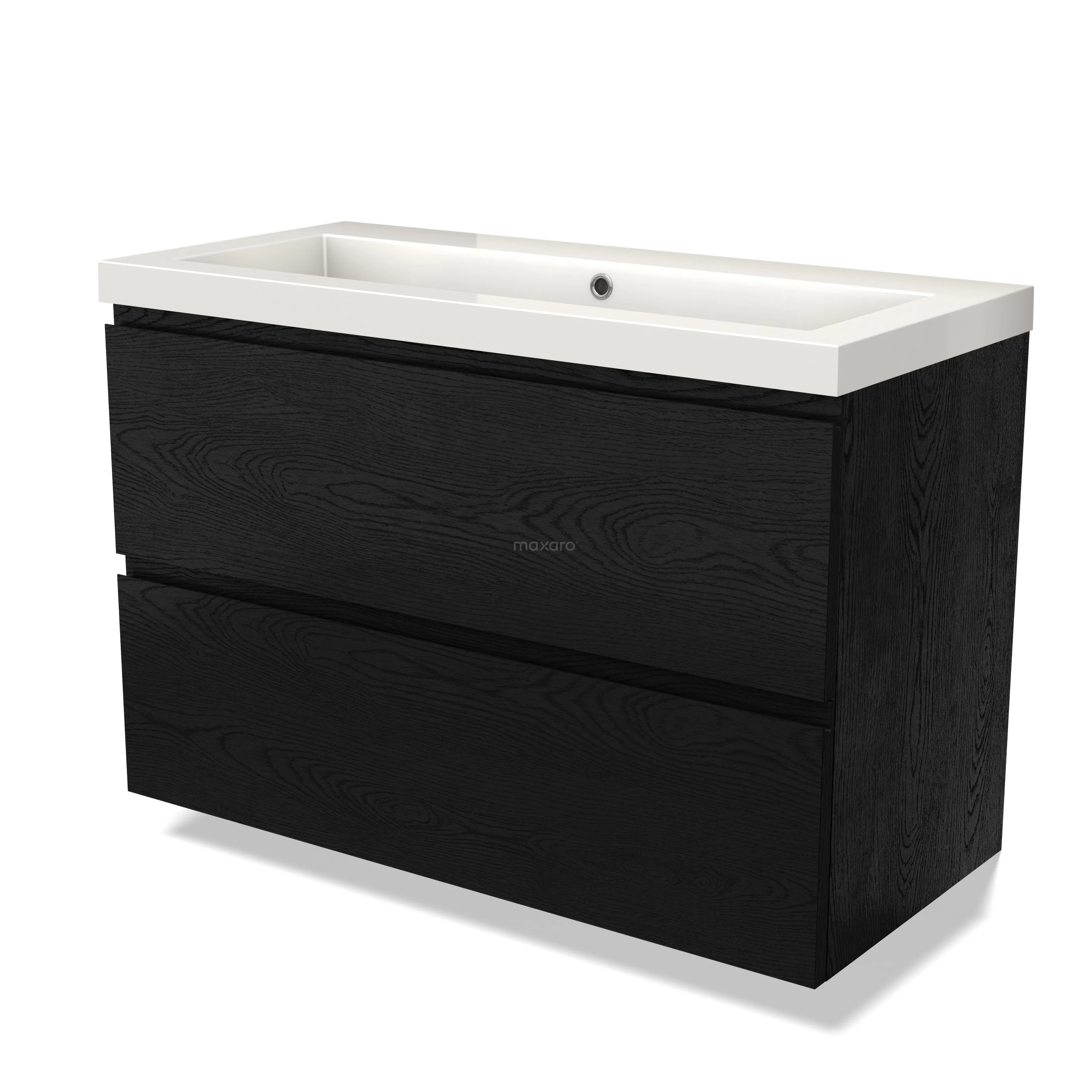 Modulo Waschtische | 100 cm Schwarze Eiche Grifflos front Mineralguss 2 übereinanderliegende Schubladen