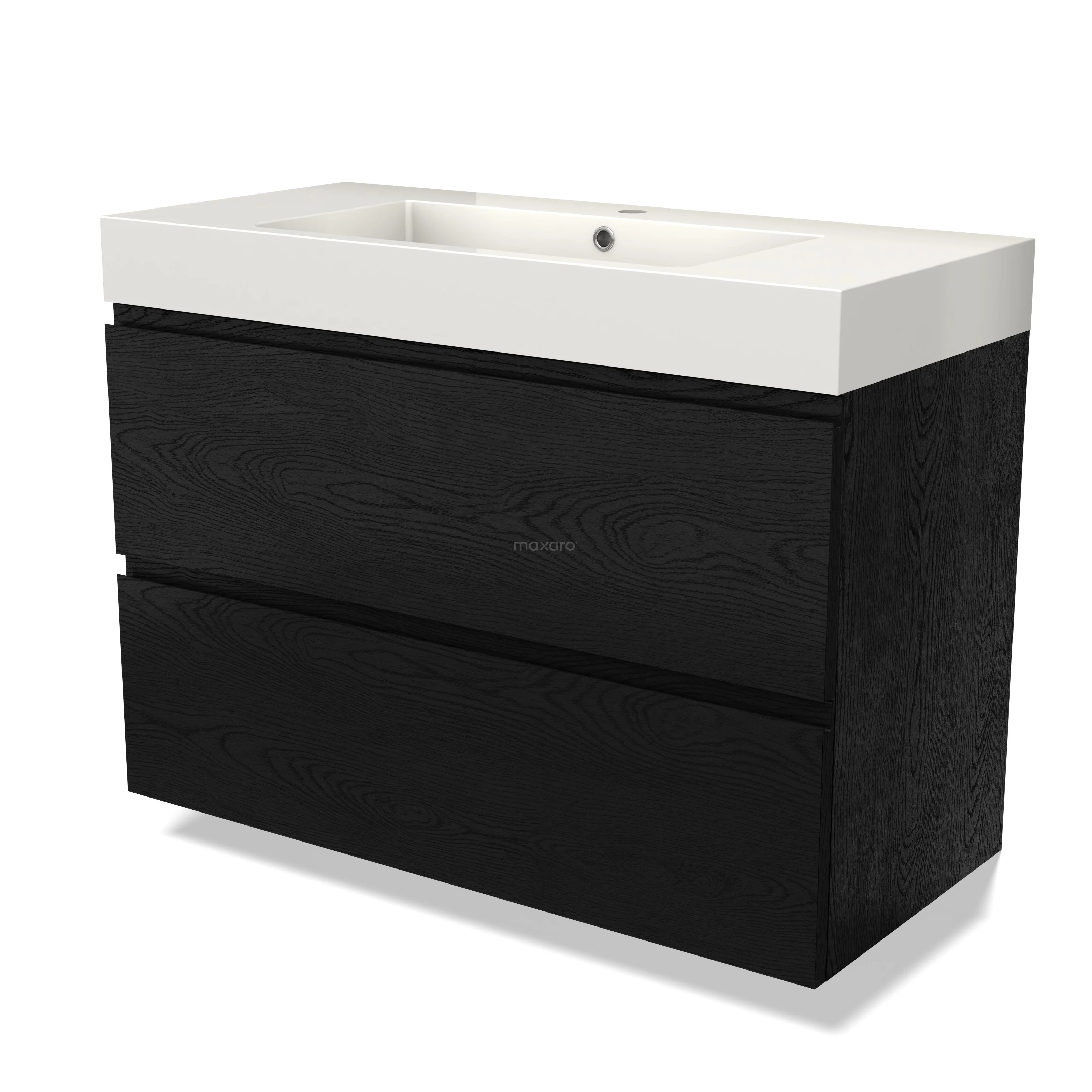 Modulo Waschtische | 100 cm Schwarze Eiche Grifflos front Mineralguss 2 übereinanderliegende Schubladen