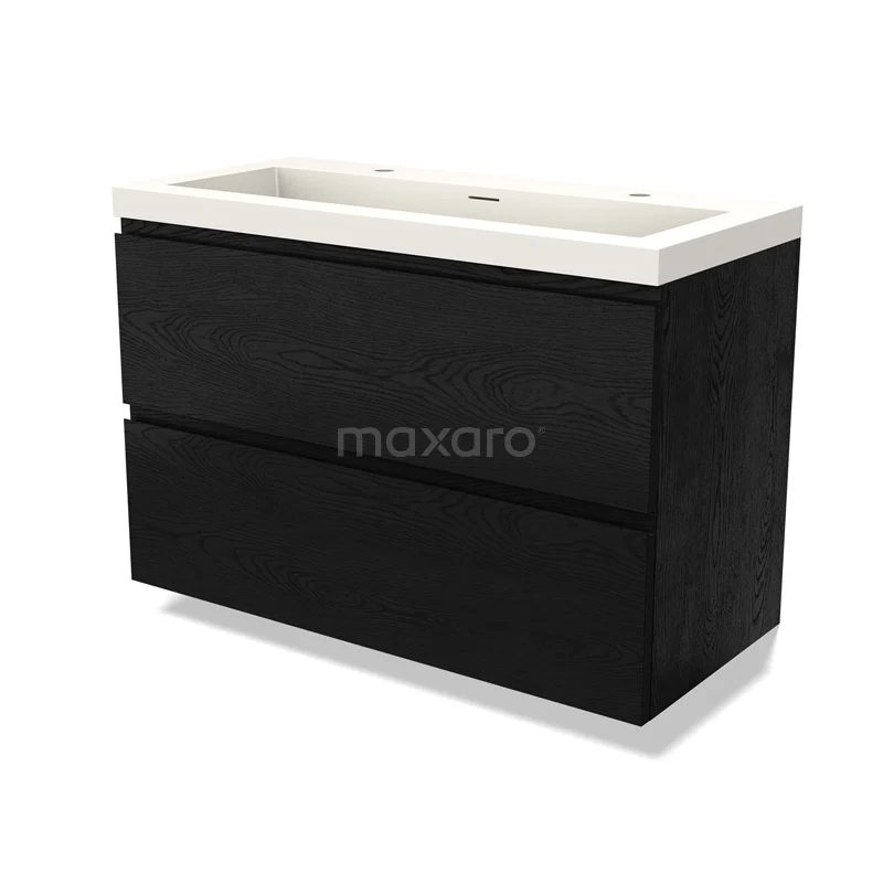 Modulo Waschtische | 100 cm Schwarze Eiche Grifflos front Solid Surface 2 übereinanderliegende Schubladen