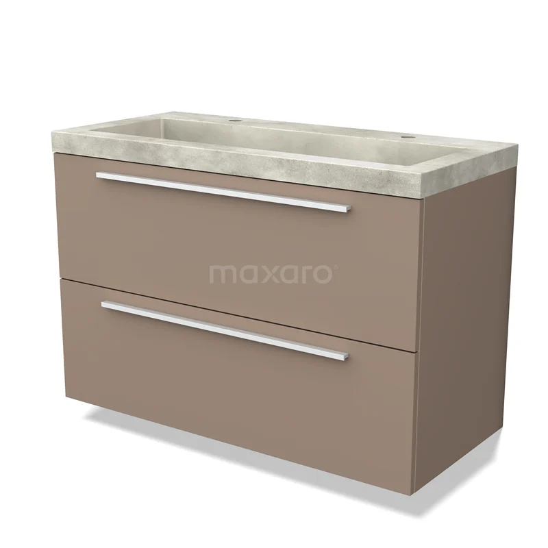 Modulo Waschtische | 100 cm Taupe Flach front Beton 2 übereinanderliegende Schubladen