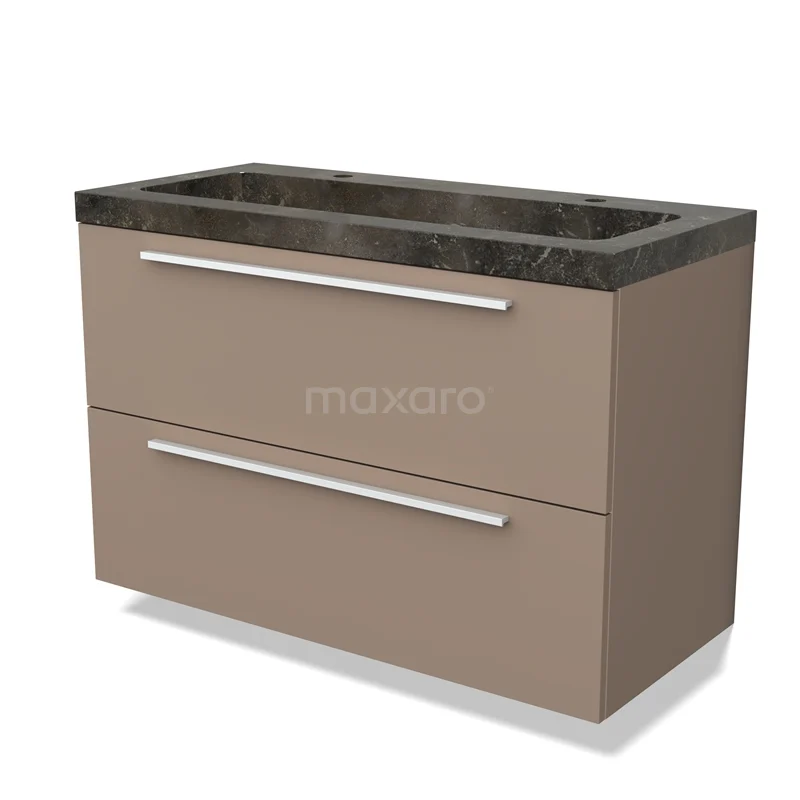 Modulo Waschtische | 100 cm Taupe Flach front Naturstein 2 übereinanderliegende Schubladen