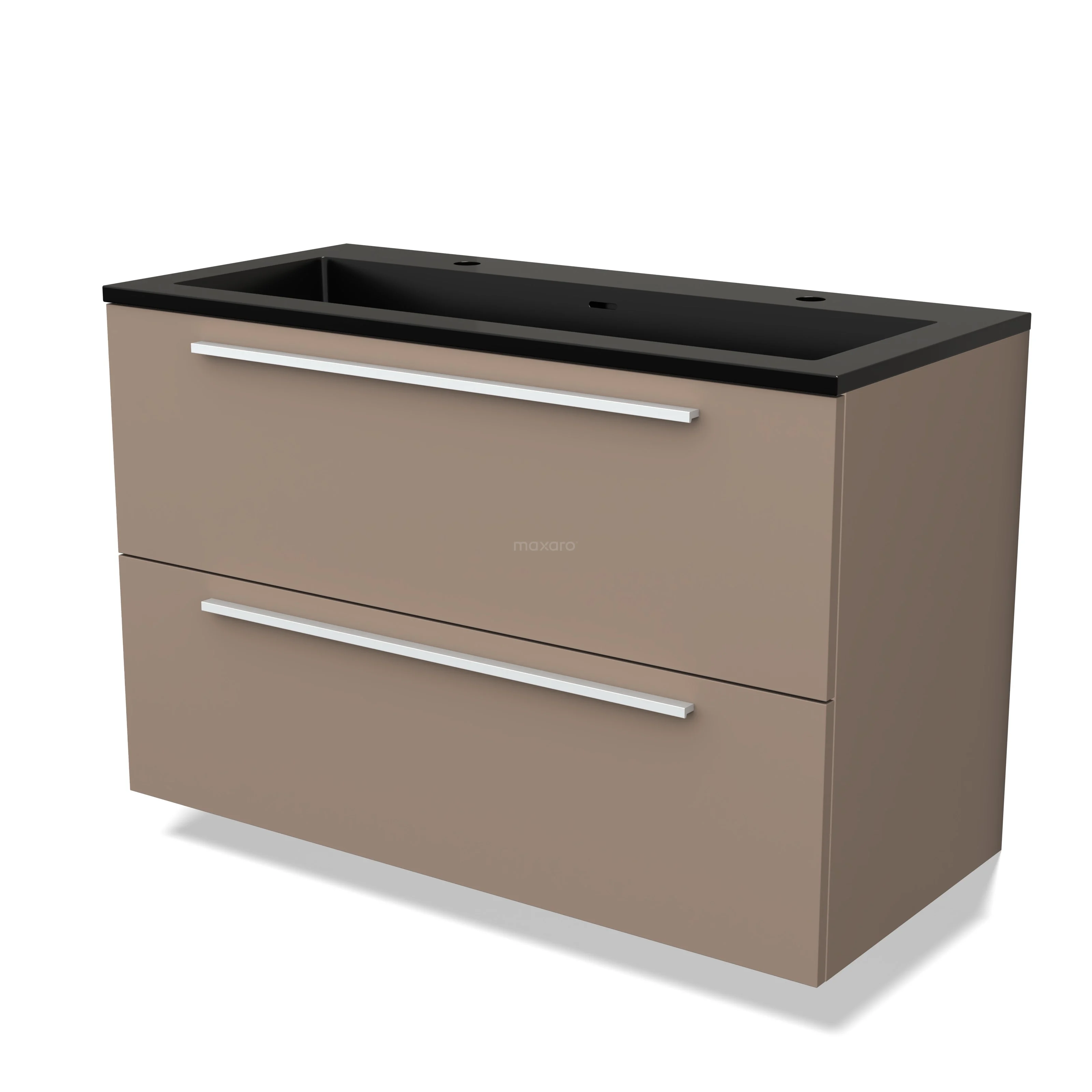 Modulo Waschtische | 100 cm Taupe Flach front Quarz 2 übereinanderliegende Schubladen