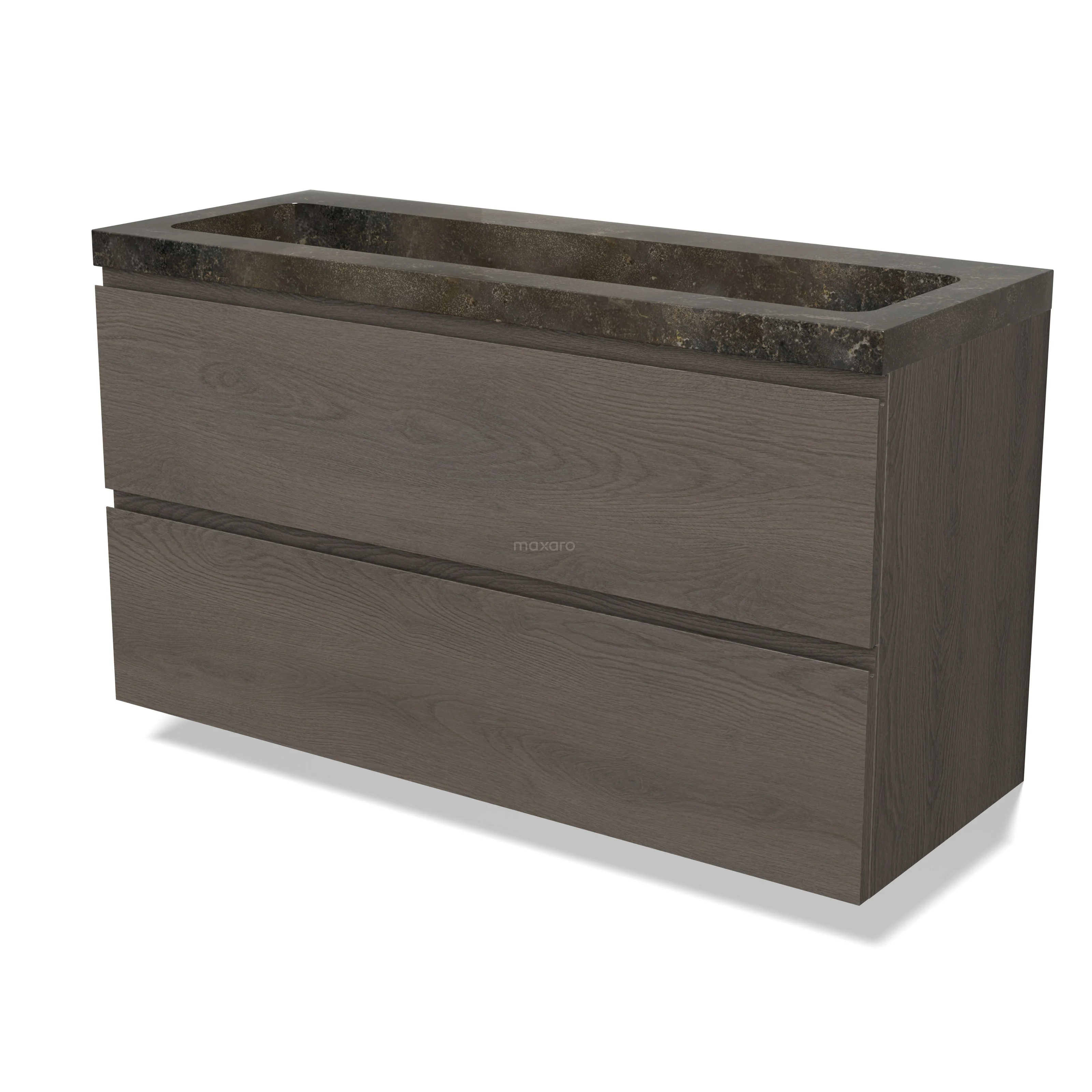Modulo Waschtische | 120 cm Dunkelbraune Eiche Grifflos front Naturstein 2 übereinanderliegende Schubladen