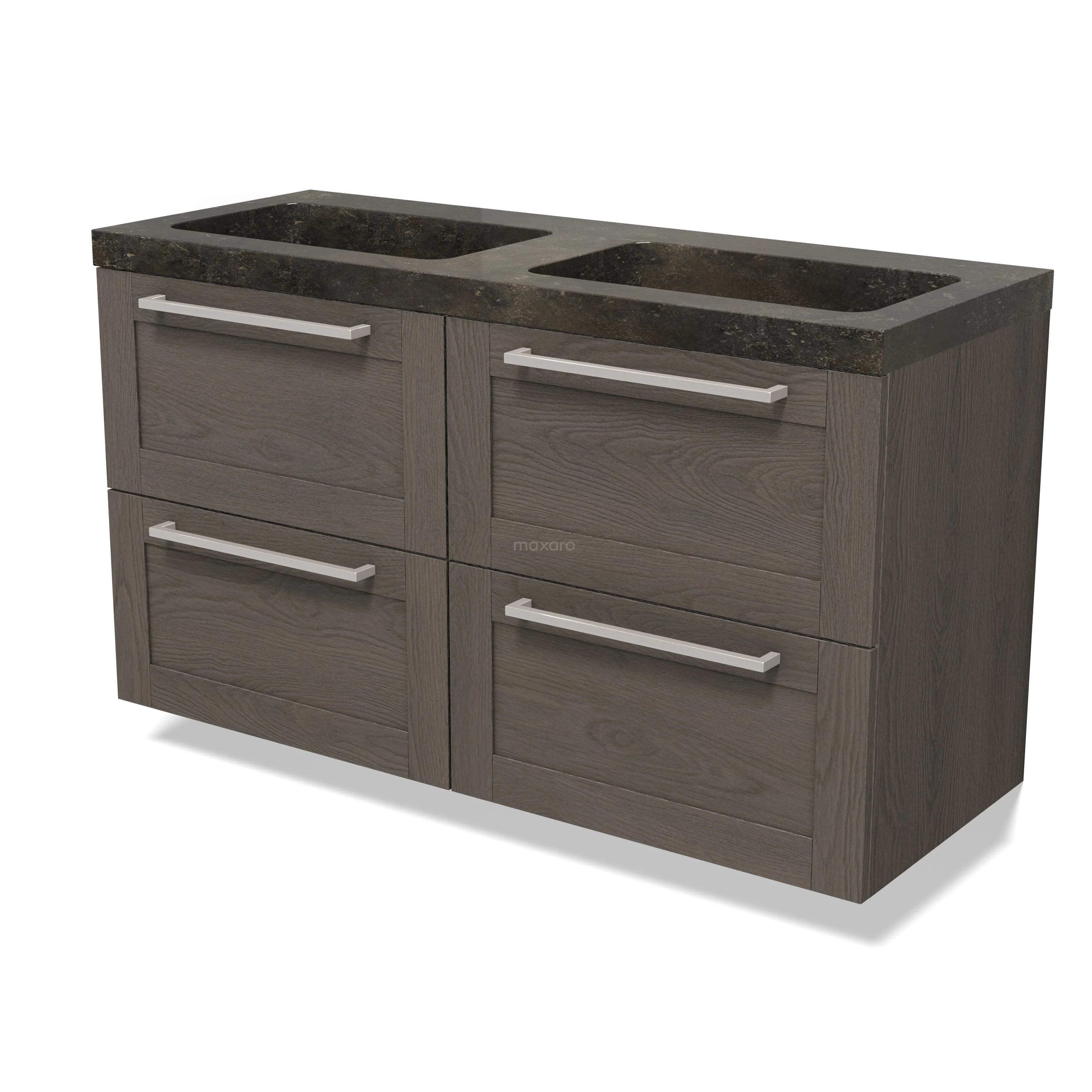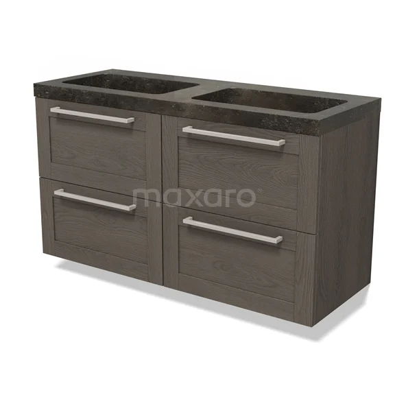 Modulo Waschtische | 120 cm Dunkelbraune Eiche Rahmen front Naturstein 4 Schubladen