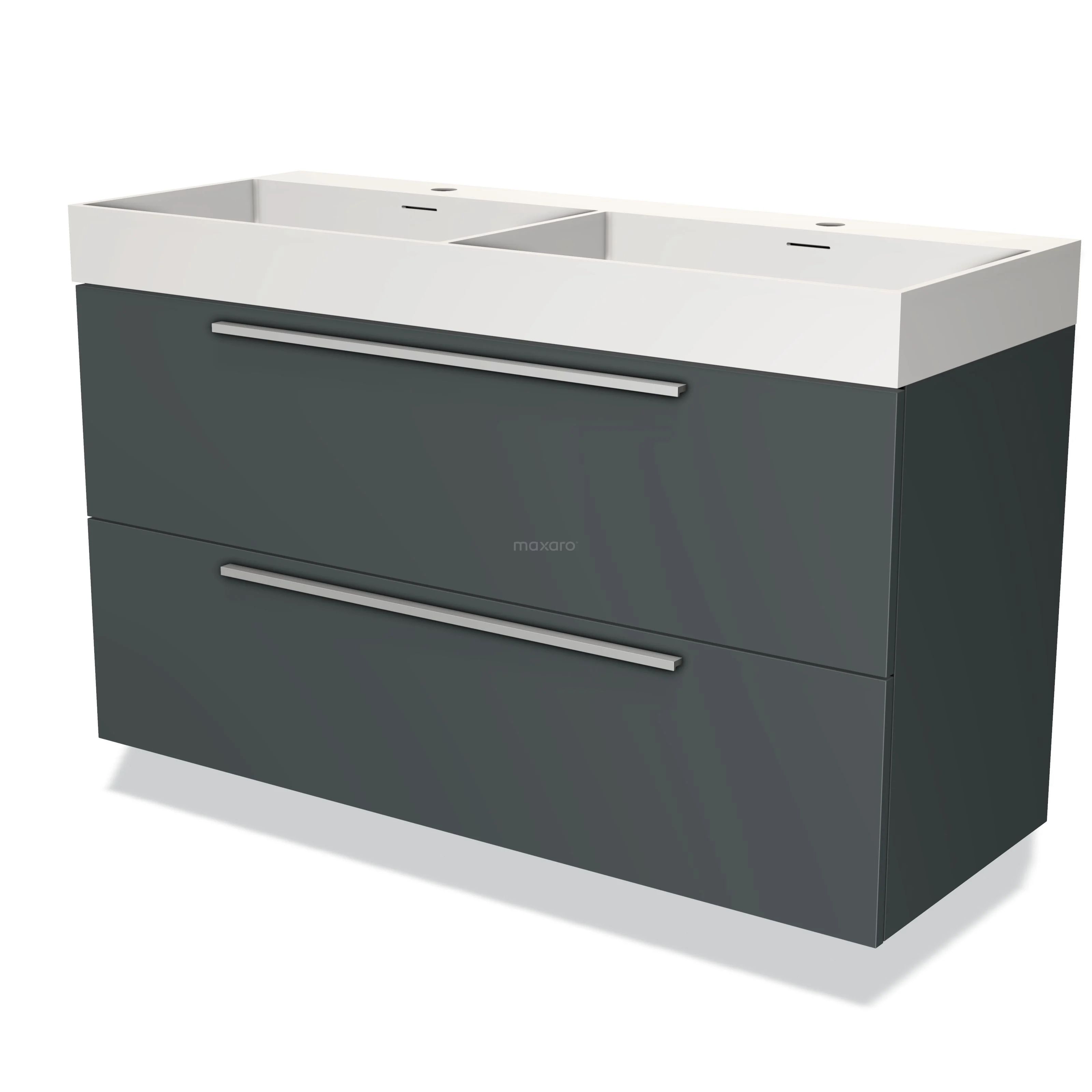 Modulo Waschtische | 120 cm Dunkelgrau Flach front Solid Surface 2 übereinanderliegende Schubladen