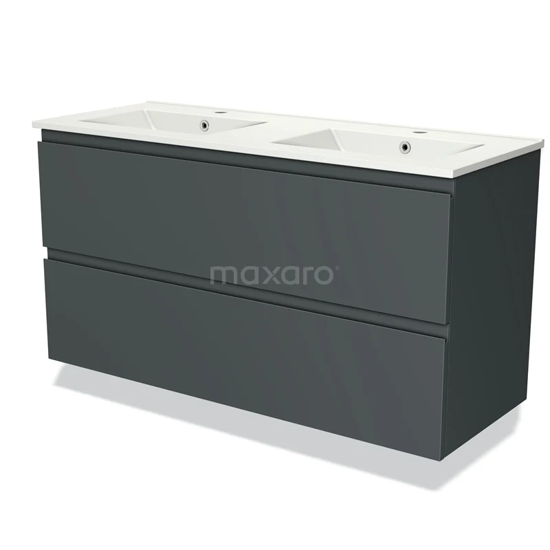 Modulo Waschtische | 120 cm Dunkelgrau Grifflos front Keramik 2 übereinanderliegende Schubladen