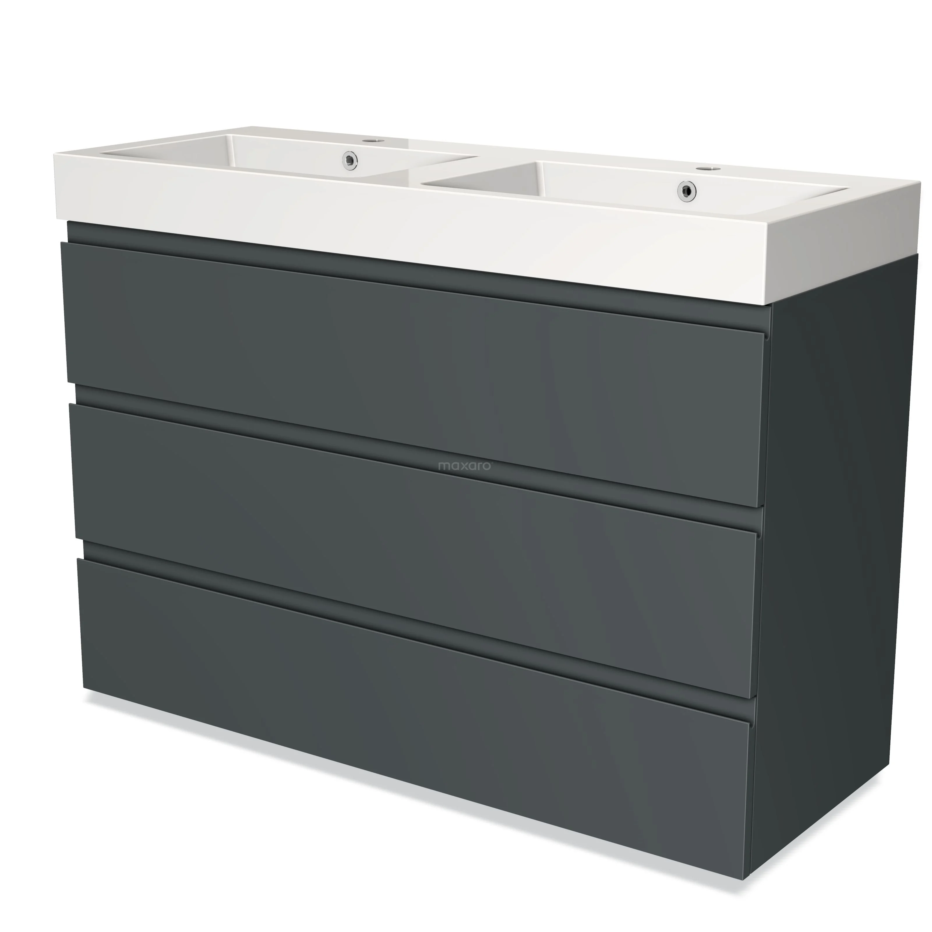 Modulo Waschtische | 120 cm Dunkelgrau Grifflos front Mineralguss 3 Schubladen