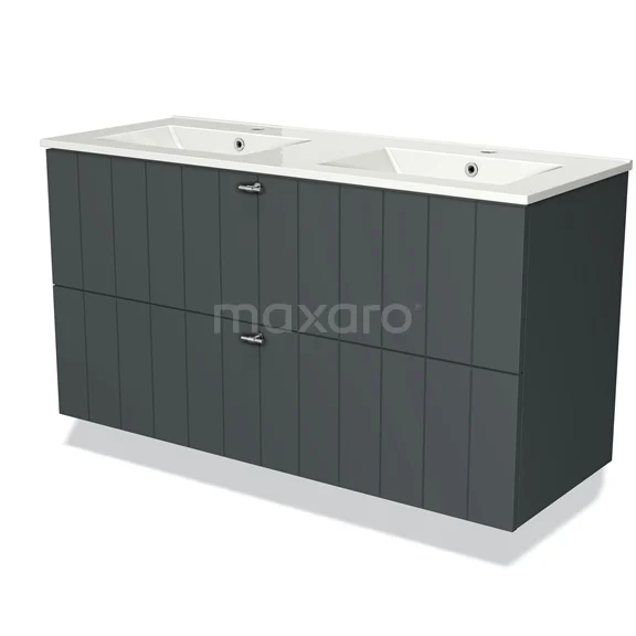 Modulo Waschtische | 120 cm Dunkelgrau Lamelle front Keramik 2 übereinanderliegende Schubladen