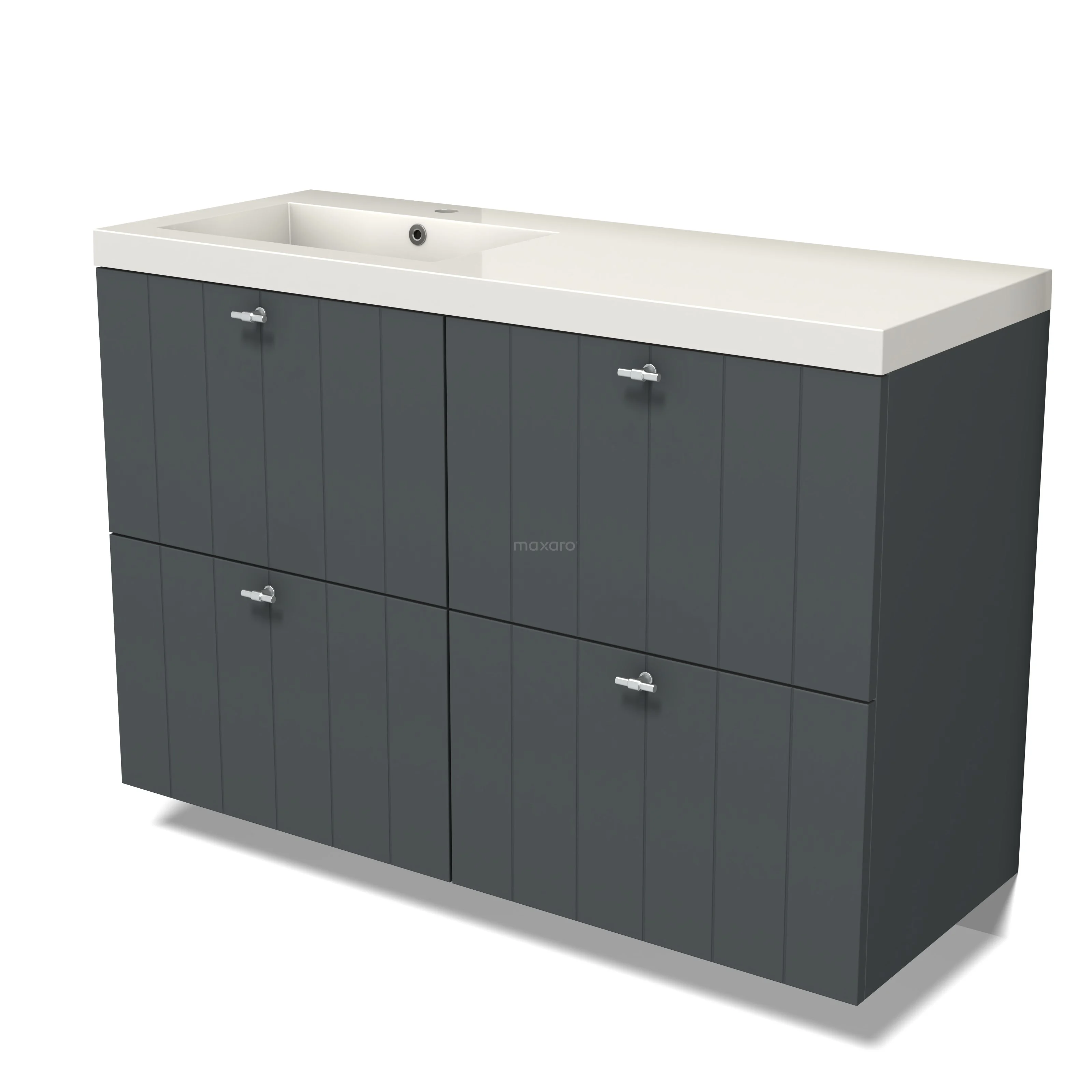 Modulo Waschtische | 120 cm Dunkelgrau Lamelle front Mineralguss 4 hohe Schubladen