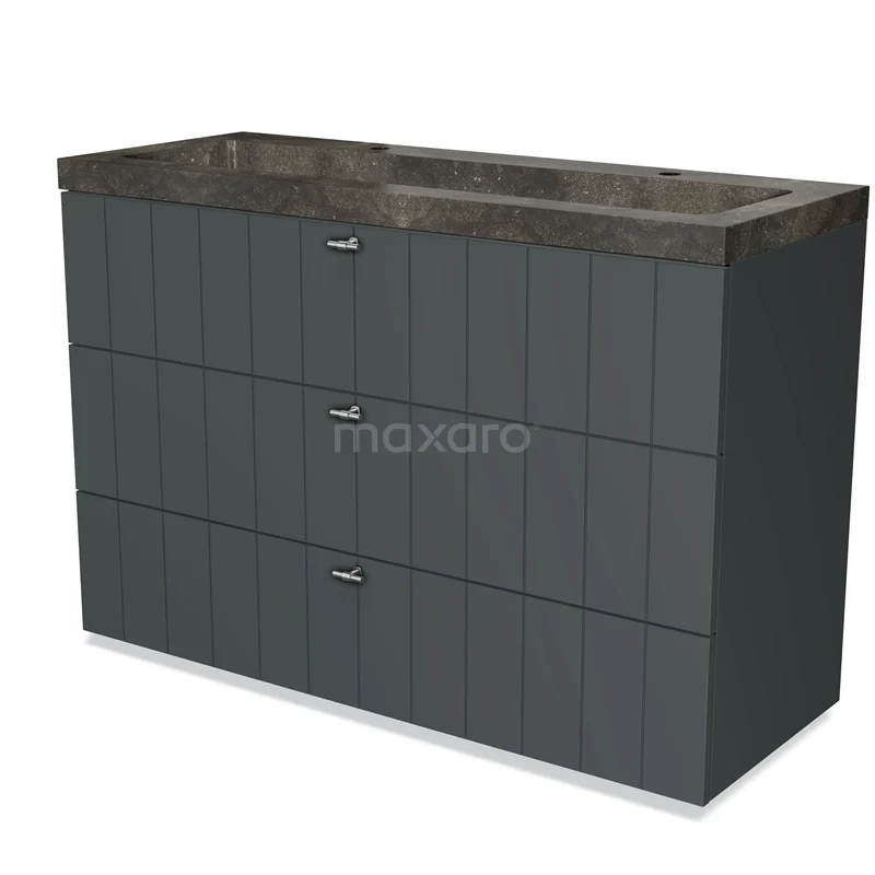 Modulo Waschtische | 120 cm Dunkelgrau Lamelle front Naturstein 3 Schubladen