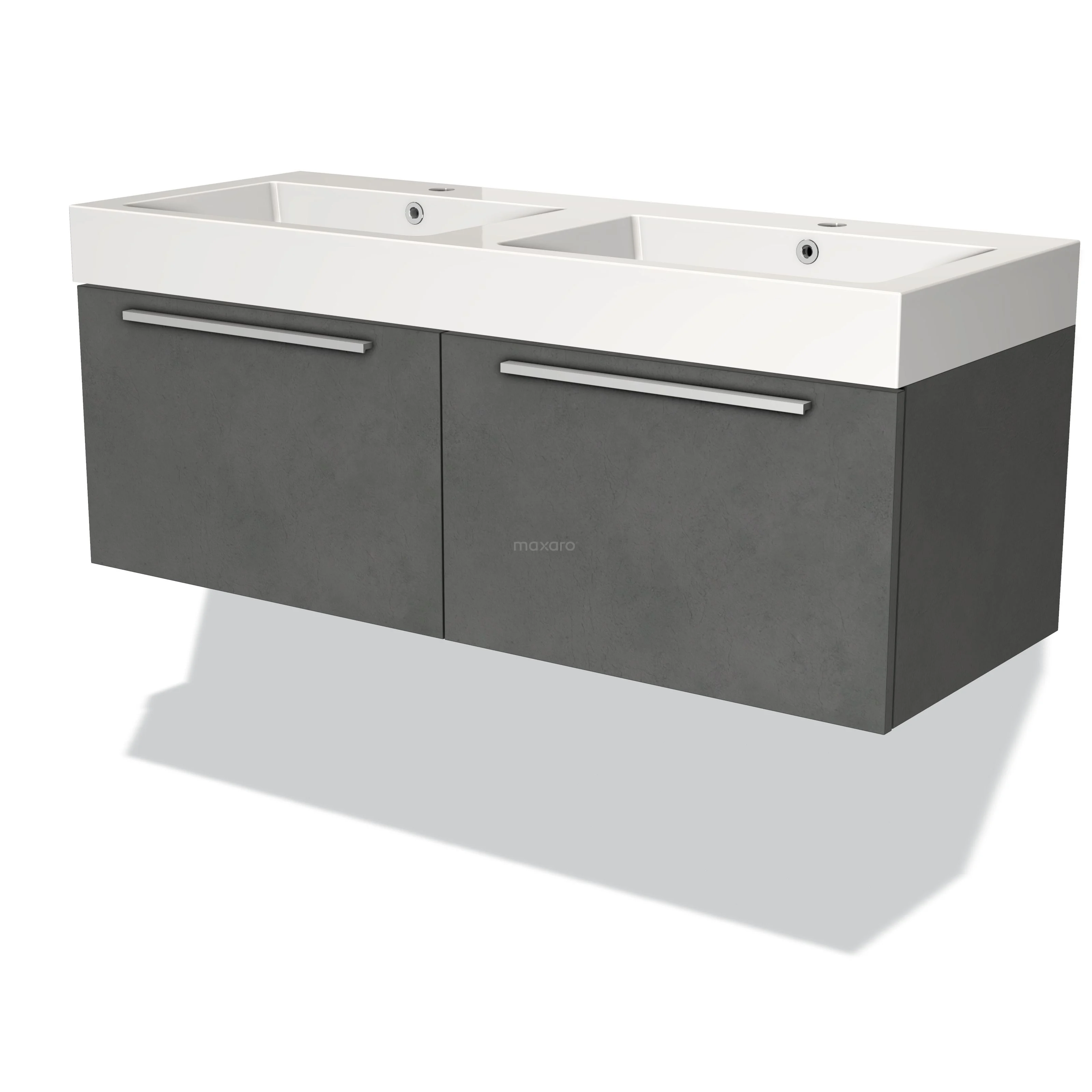 Modulo Waschtische | 120 cm Dunkelgrauer Beton Flach front Mineralguss 2 nebeneinanderliegende Schubladen