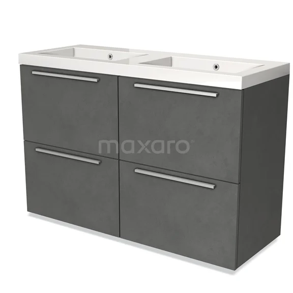 Modulo Waschtische | 120 cm Dunkelgrauer Beton Flach front Mineralguss 4 hohe Schubladen