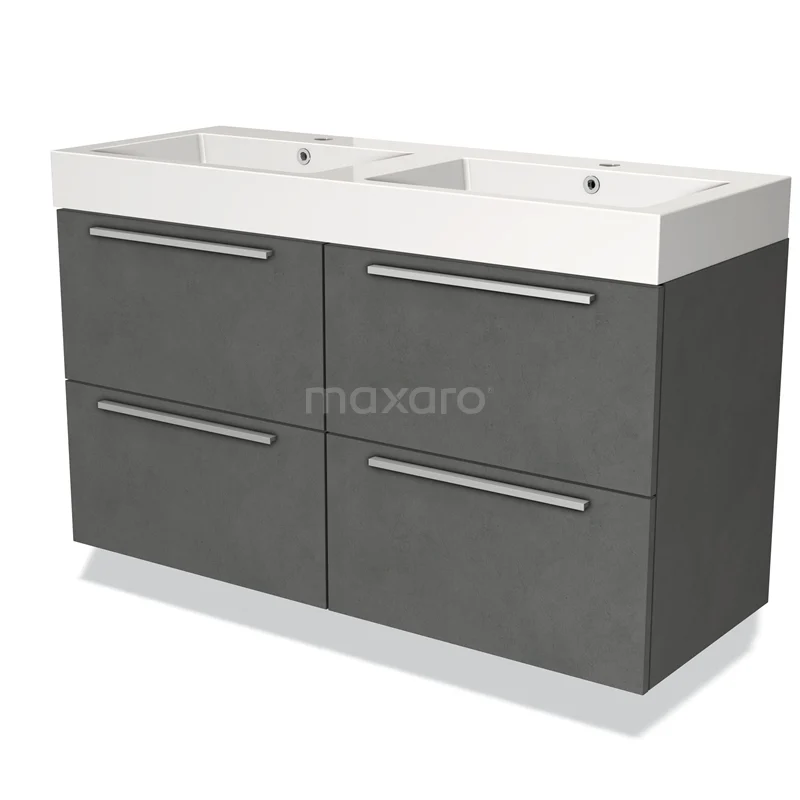 Modulo Waschtische | 120 cm Dunkelgrauer Beton Flach front Mineralguss 4 Schubladen