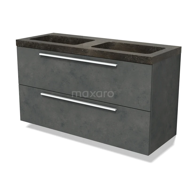 Modulo Waschtische | 120 cm Dunkelgrauer Beton Flach front Naturstein 2 übereinanderliegende Schubladen