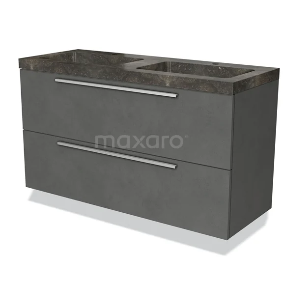 Modulo Waschtische | 120 cm Dunkelgrauer Beton Flach front Naturstein 2 übereinanderliegende Schubladen