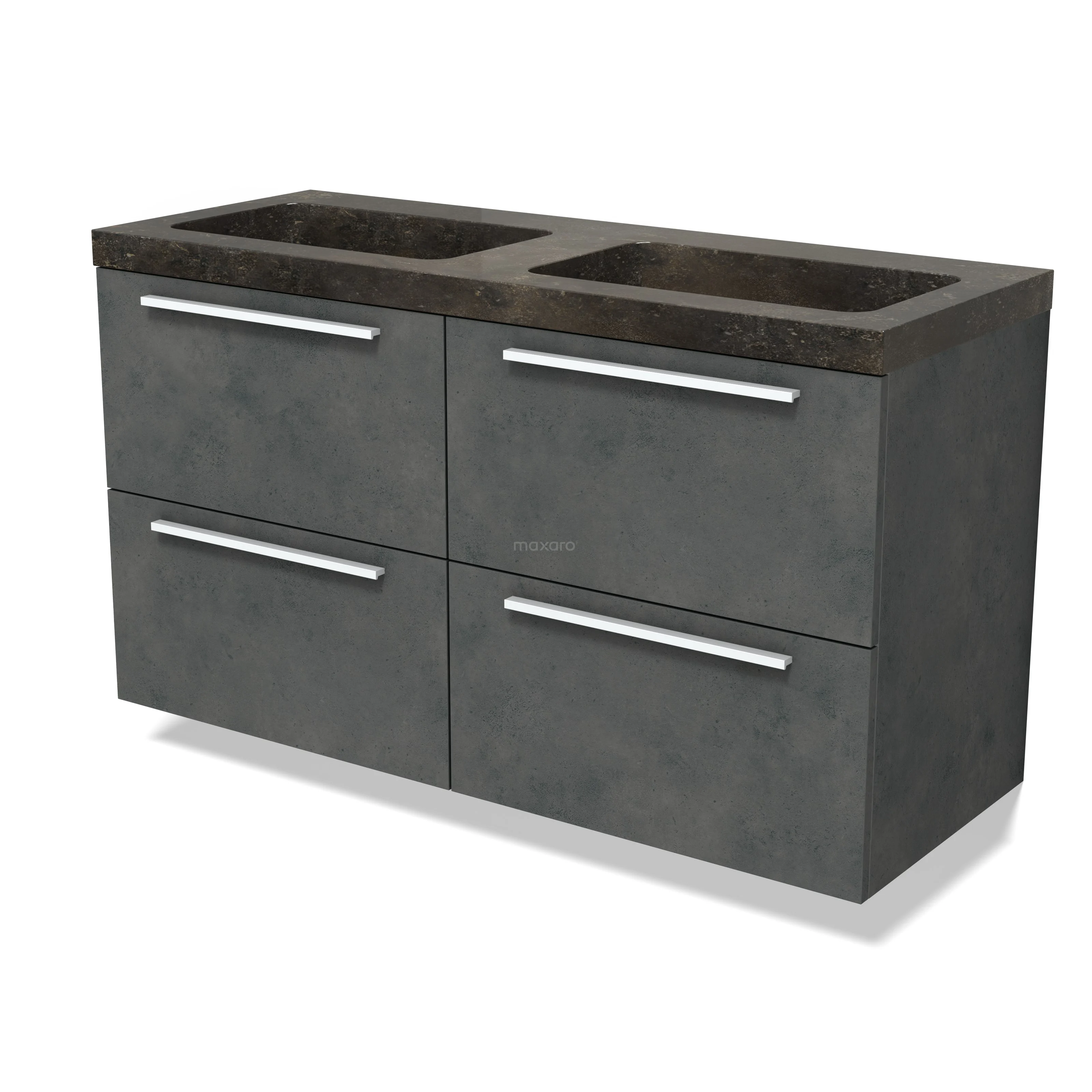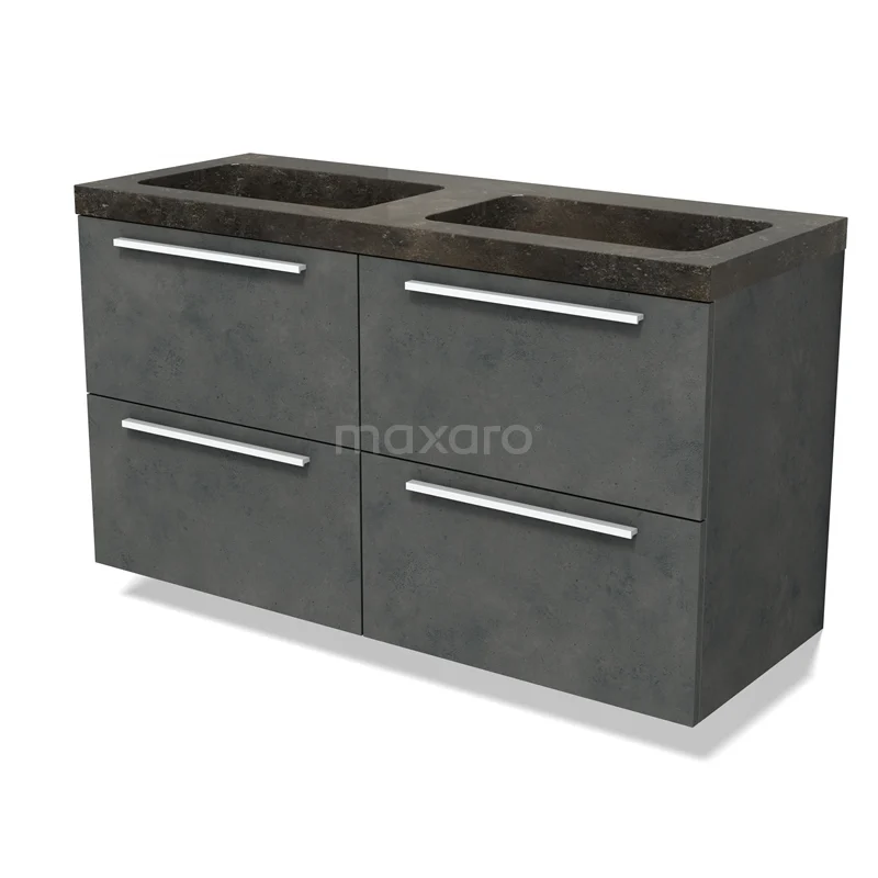 Modulo Waschtische | 120 cm Dunkelgrauer Beton Flach front Naturstein 4 Schubladen