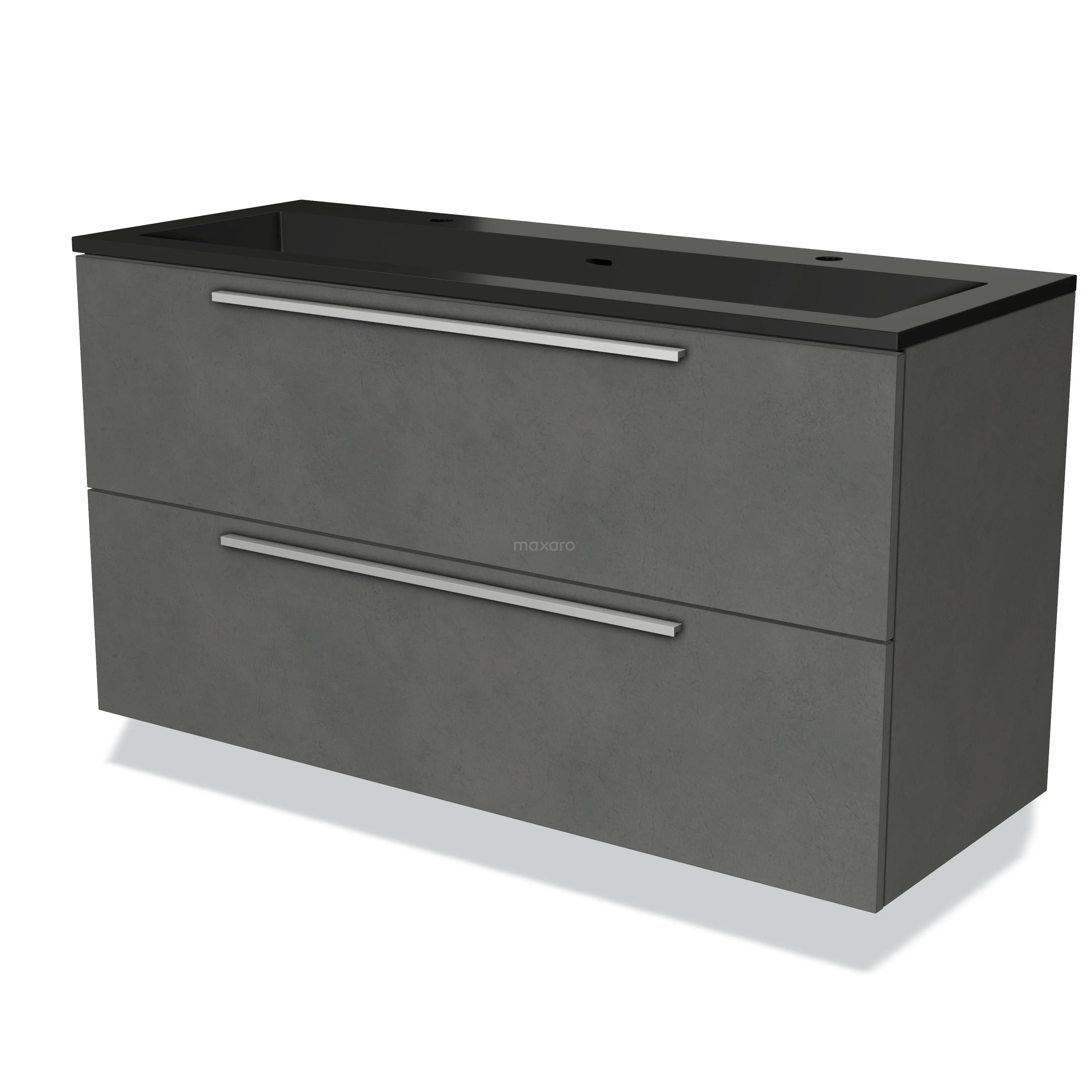 Modulo Waschtische | 120 cm Dunkelgrauer Beton Flach front Quarz 2 übereinanderliegende Schubladen