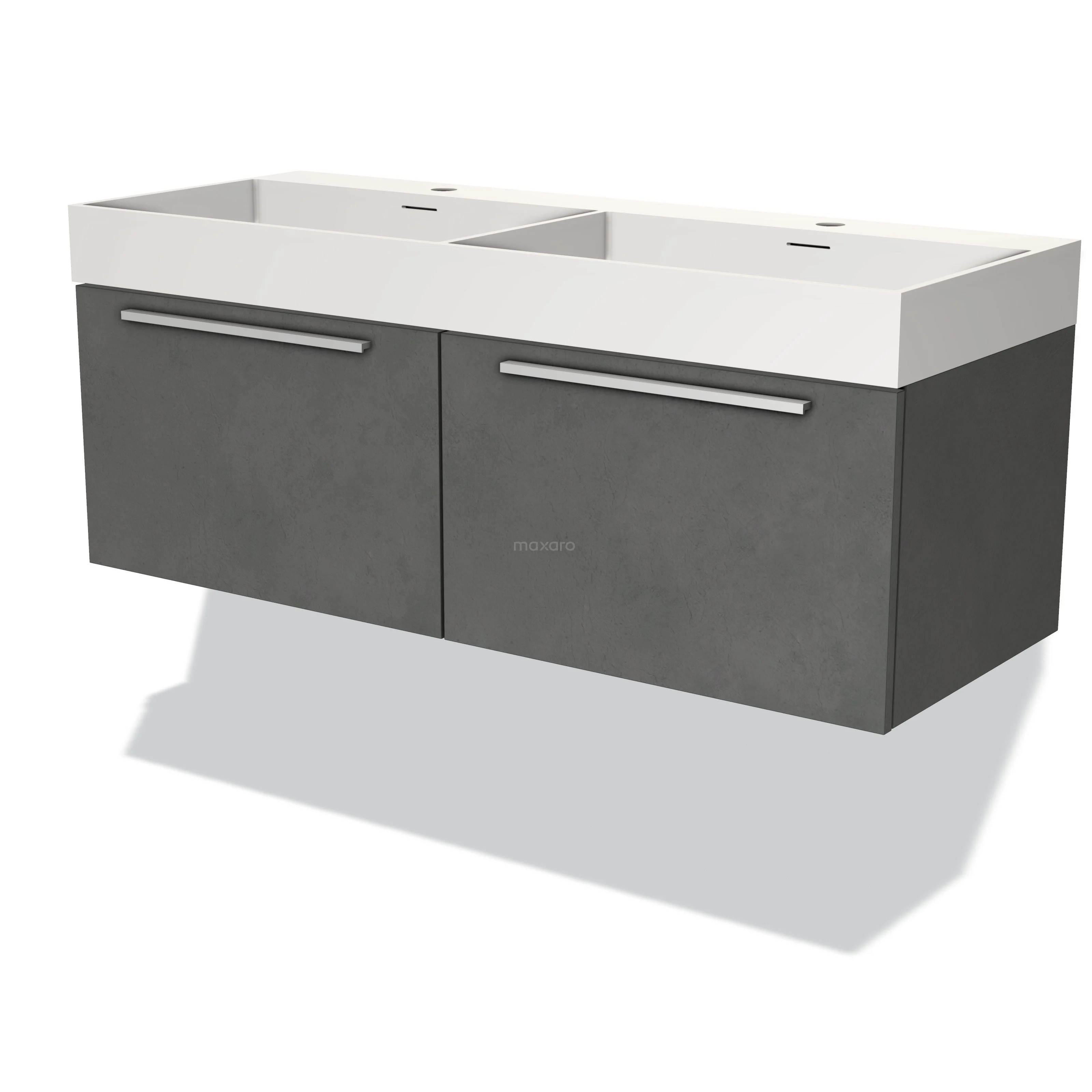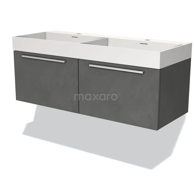 Modulo Waschtische | 120 cm Dunkelgrauer Beton Flach front Solid Surface 2 nebeneinanderliegende Schubladen