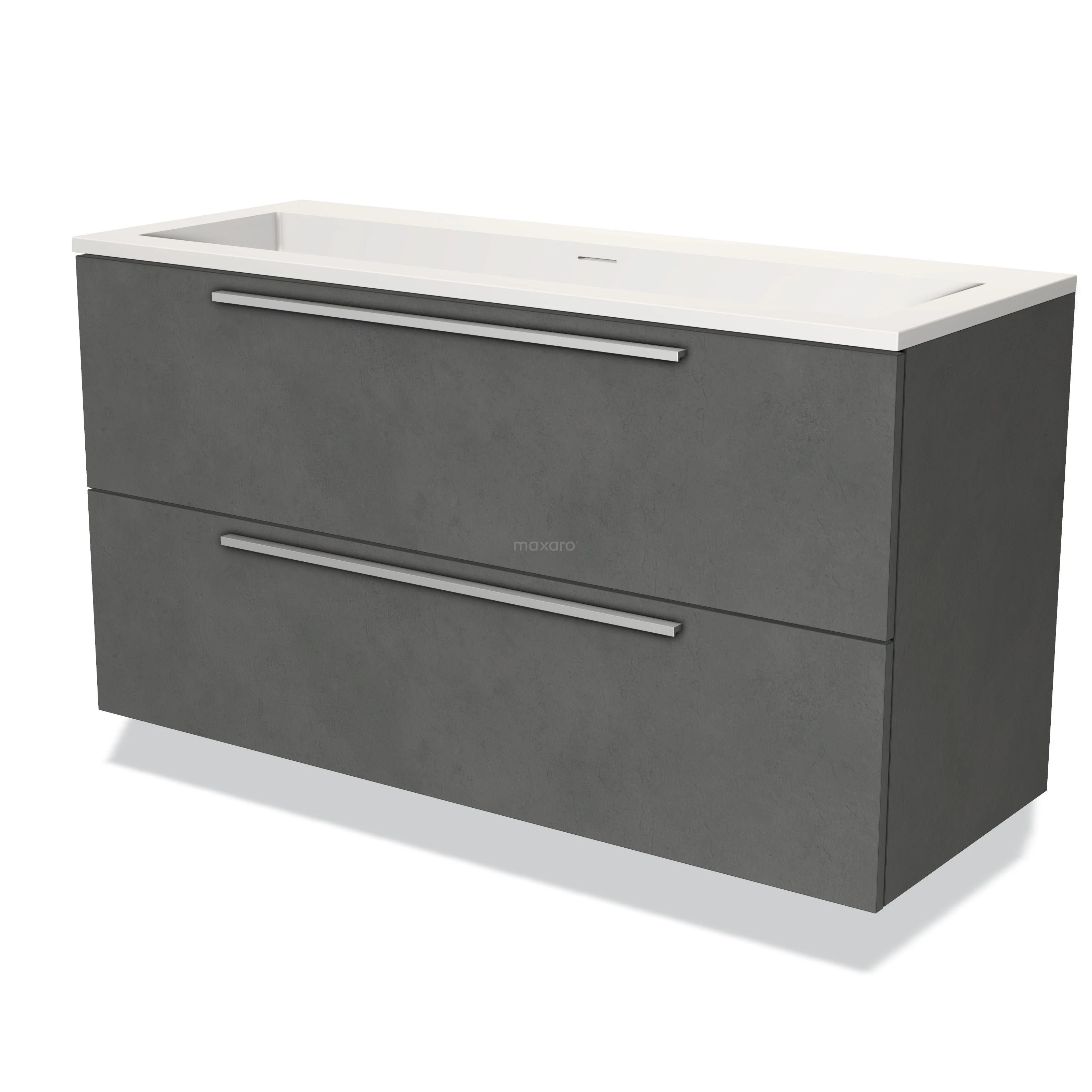 Modulo Waschtische | 120 cm Dunkelgrauer Beton Flach front Solid Surface 2 übereinanderliegende Schubladen