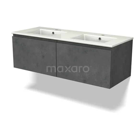 Modulo Waschtische | 120 cm Dunkelgrauer Beton Grifflos front Keramik 2 nebeneinanderliegende Schubladen