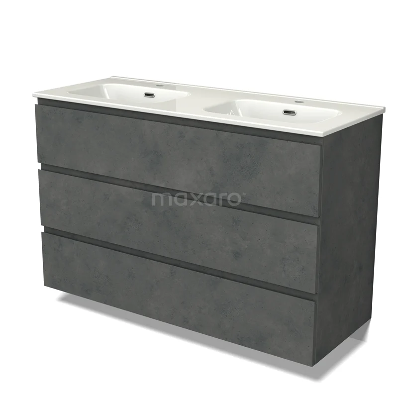 Modulo Waschtische | 120 cm Dunkelgrauer Beton Grifflos front Keramik 3 Schubladen