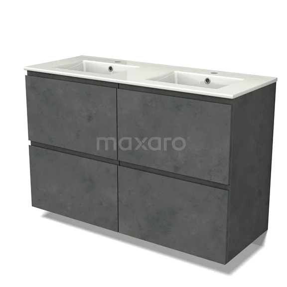 Modulo Waschtische | 120 cm Dunkelgrauer Beton Grifflos front Keramik 4 hohe Schubladen
