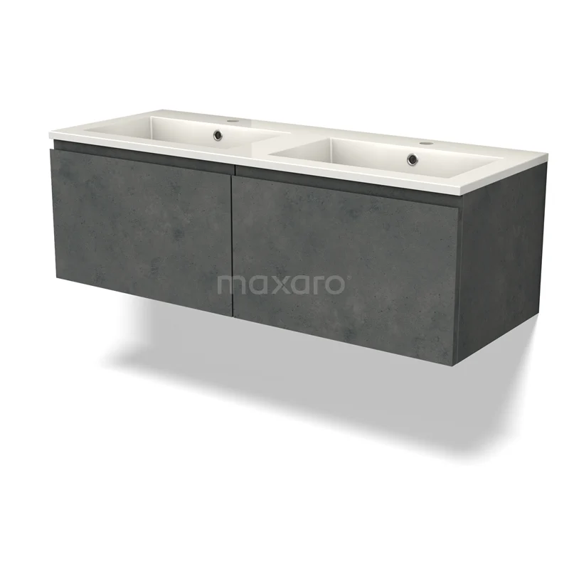 Modulo Waschtische | 120 cm Dunkelgrauer Beton Grifflos front Mineralguss 2 nebeneinanderliegende Schubladen
