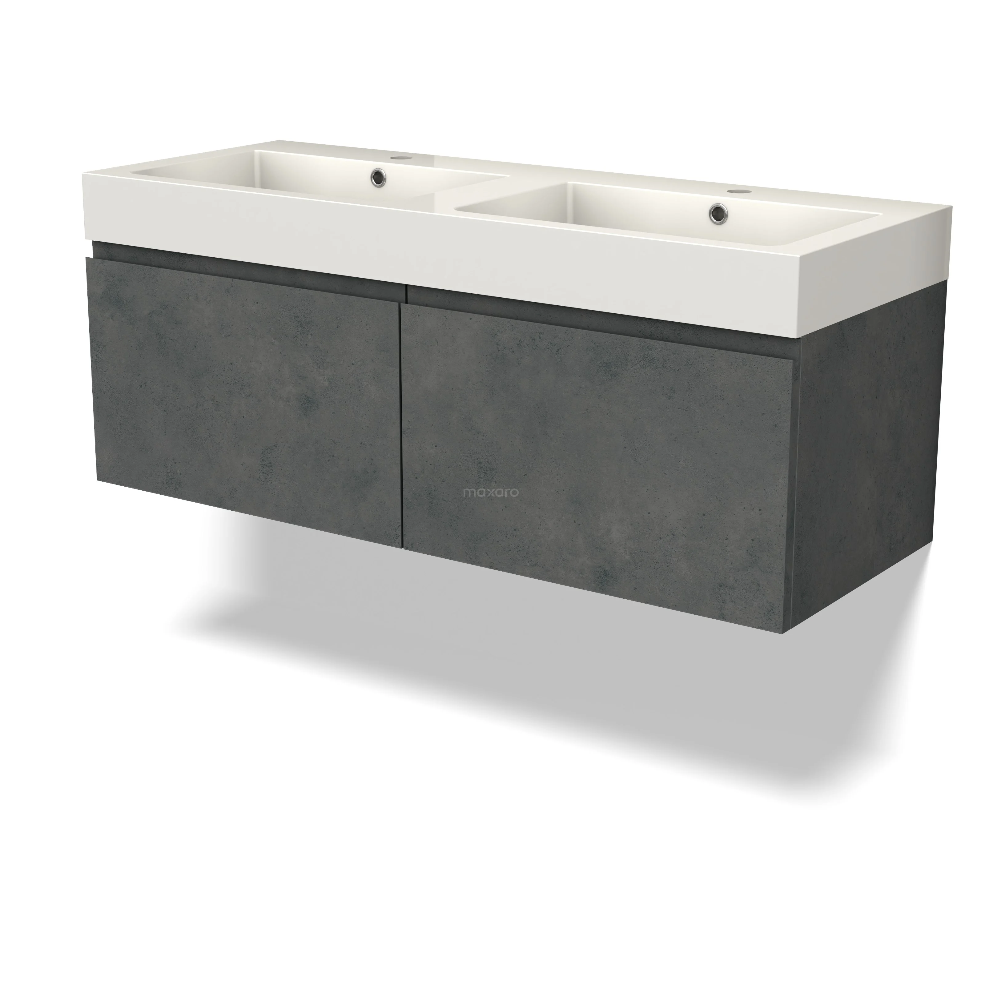 Modulo Waschtische | 120 cm Dunkelgrauer Beton Grifflos front Mineralguss 2 nebeneinanderliegende Schubladen