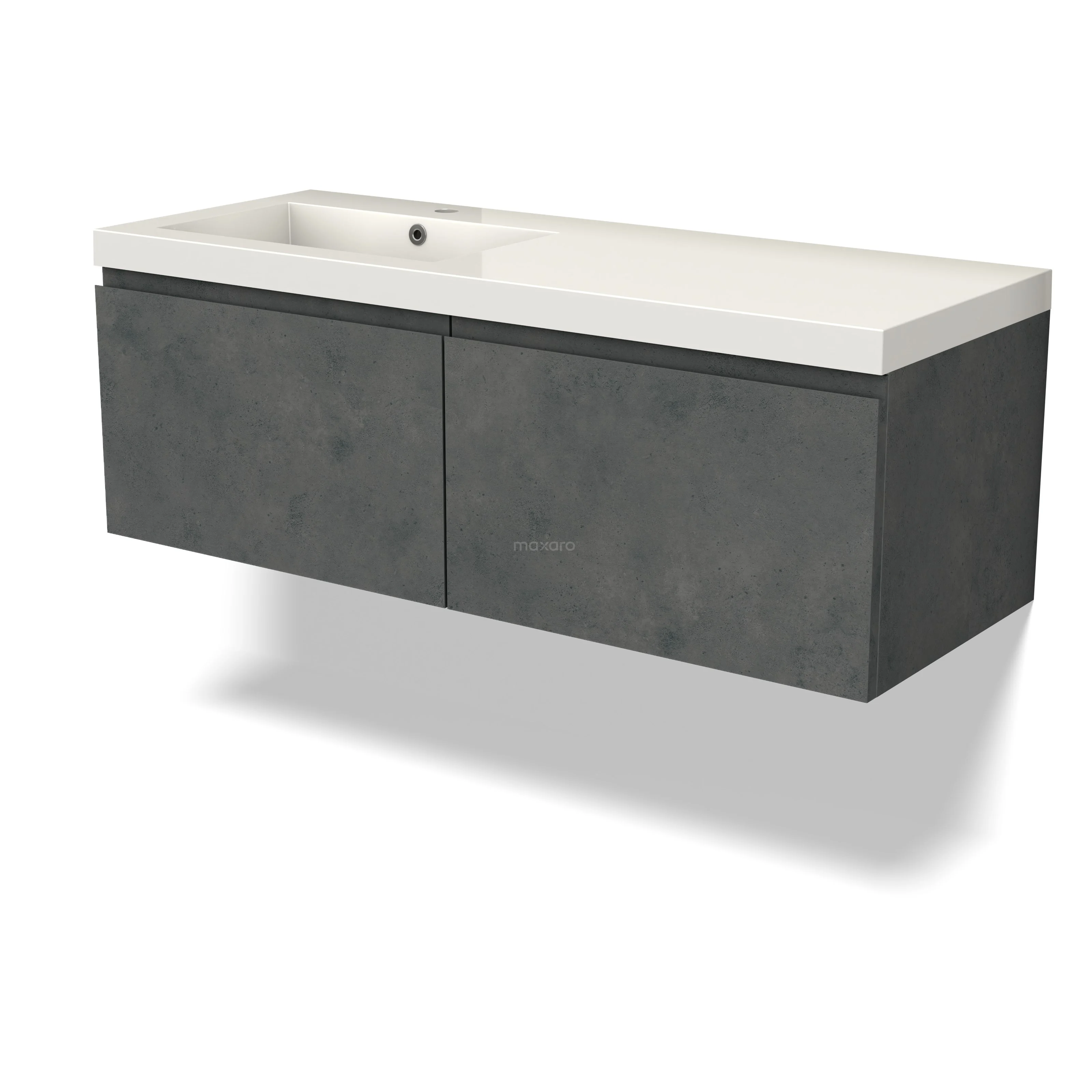 Modulo Waschtische | 120 cm Dunkelgrauer Beton Grifflos front Mineralguss 2 nebeneinanderliegende Schubladen