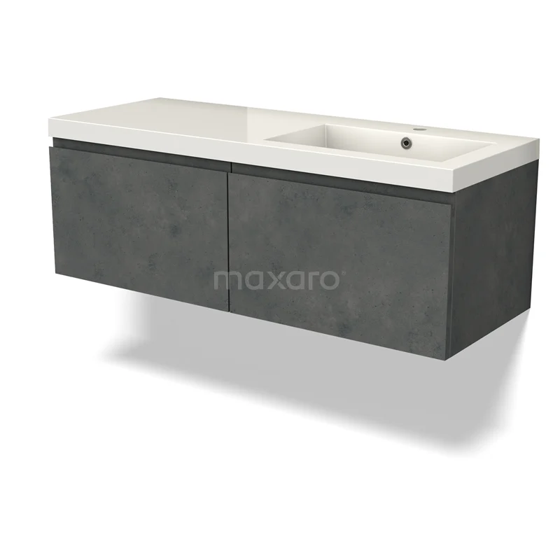 Modulo Waschtische | 120 cm Dunkelgrauer Beton Grifflos front Mineralguss 2 nebeneinanderliegende Schubladen