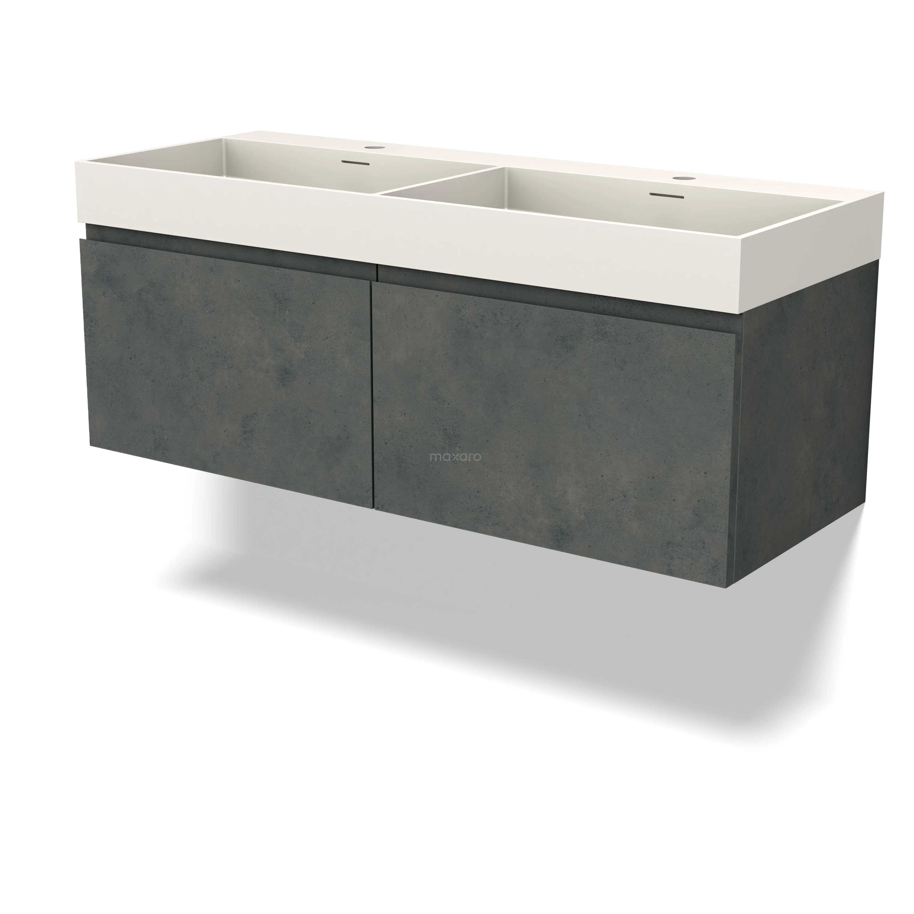 Modulo Waschtische | 120 cm Dunkelgrauer Beton Grifflos front Solid Surface 2 nebeneinanderliegende Schubladen