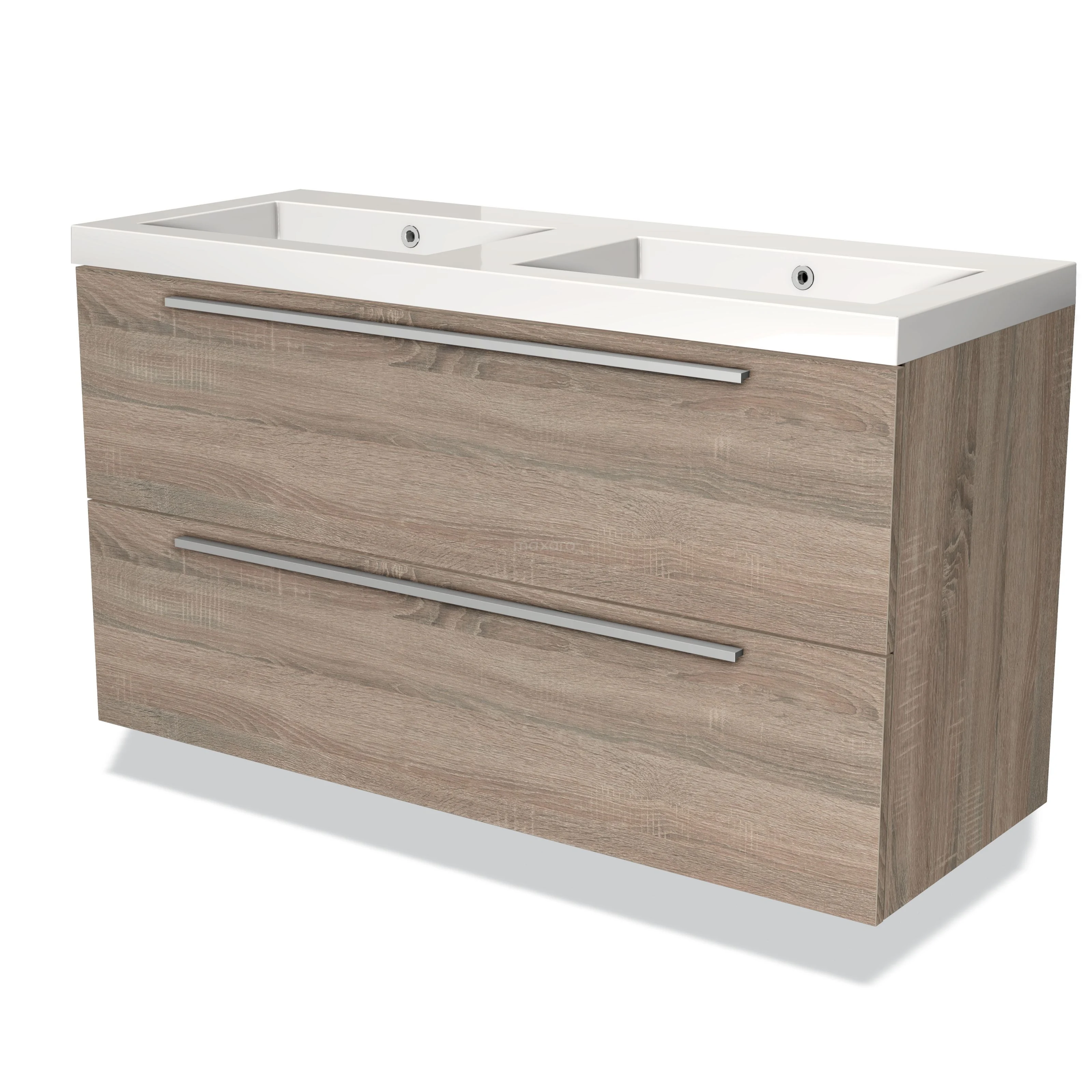Modulo Waschtische | 120 cm Eiche Flach front Mineralguss 2 übereinanderliegende Schubladen
