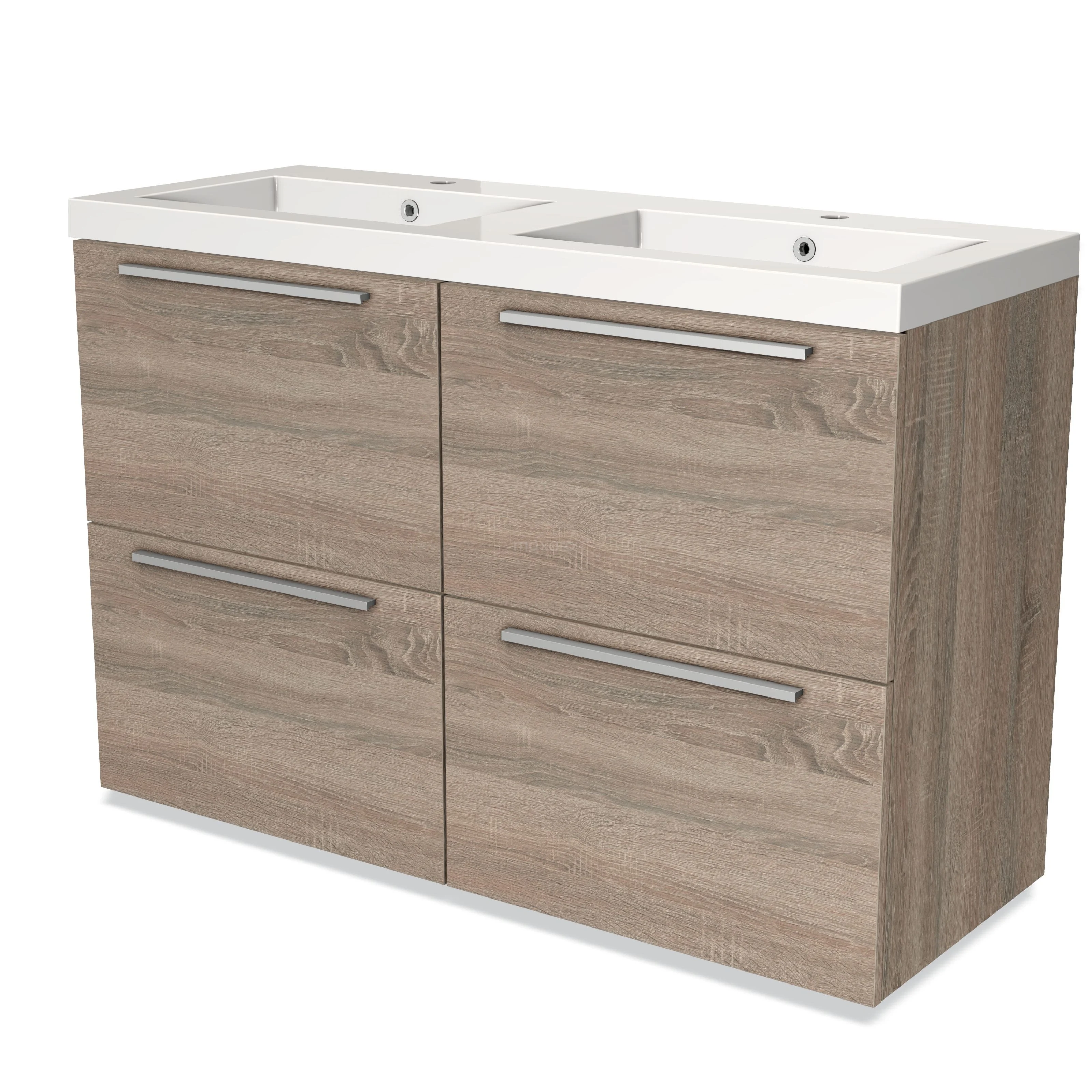 Modulo Waschtische | 120 cm Eiche Flach front Mineralguss 4 hohe Schubladen