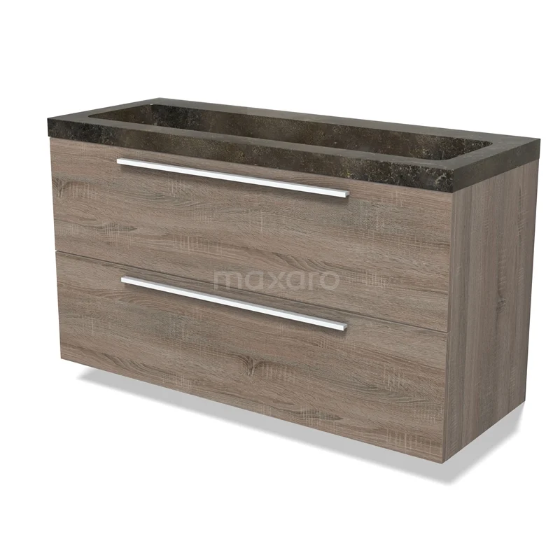 Modulo Waschtische | 120 cm Eiche Flach front Naturstein 2 übereinanderliegende Schubladen