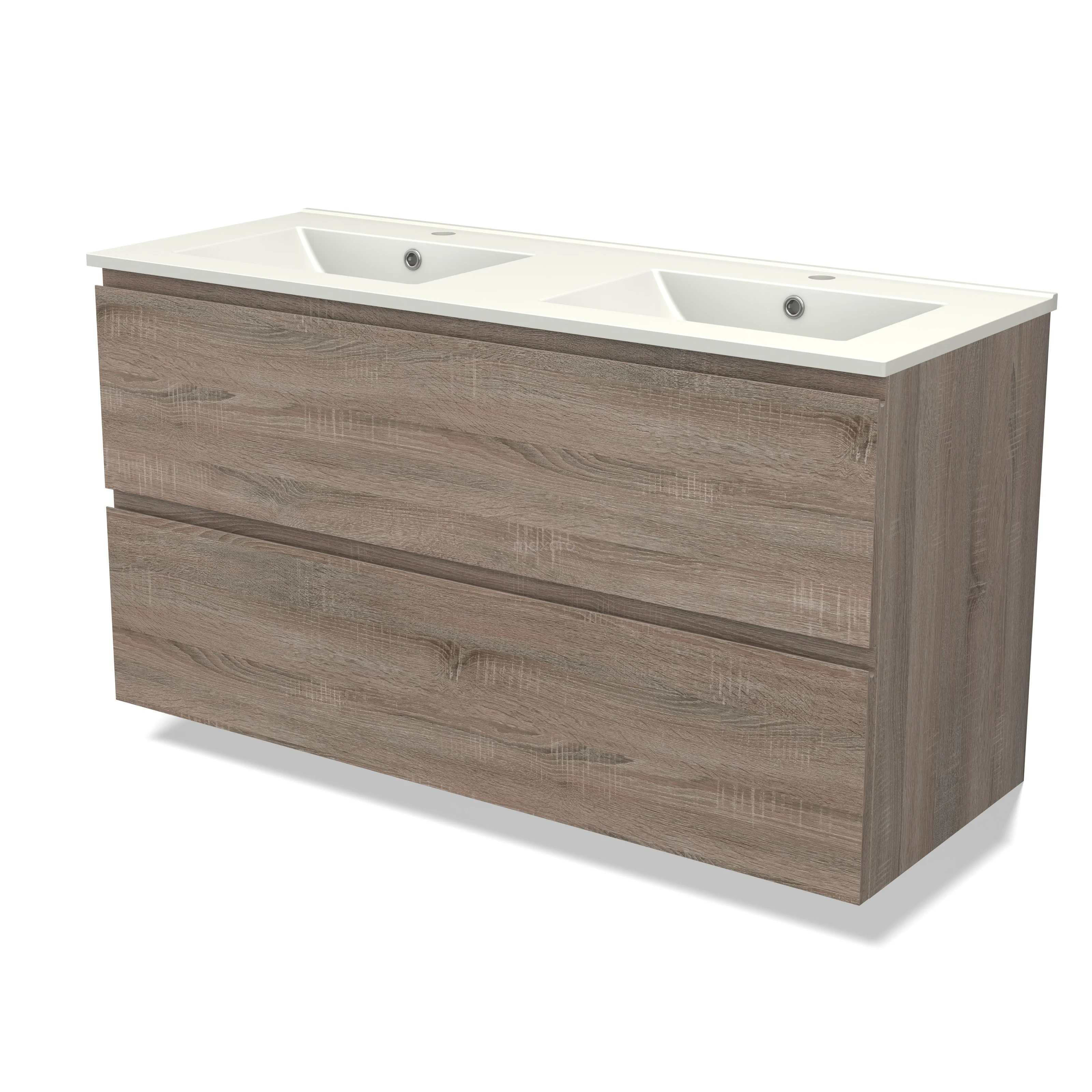 Modulo Waschtische | 120 cm Eiche Grifflos front Keramik 2 übereinanderliegende Schubladen