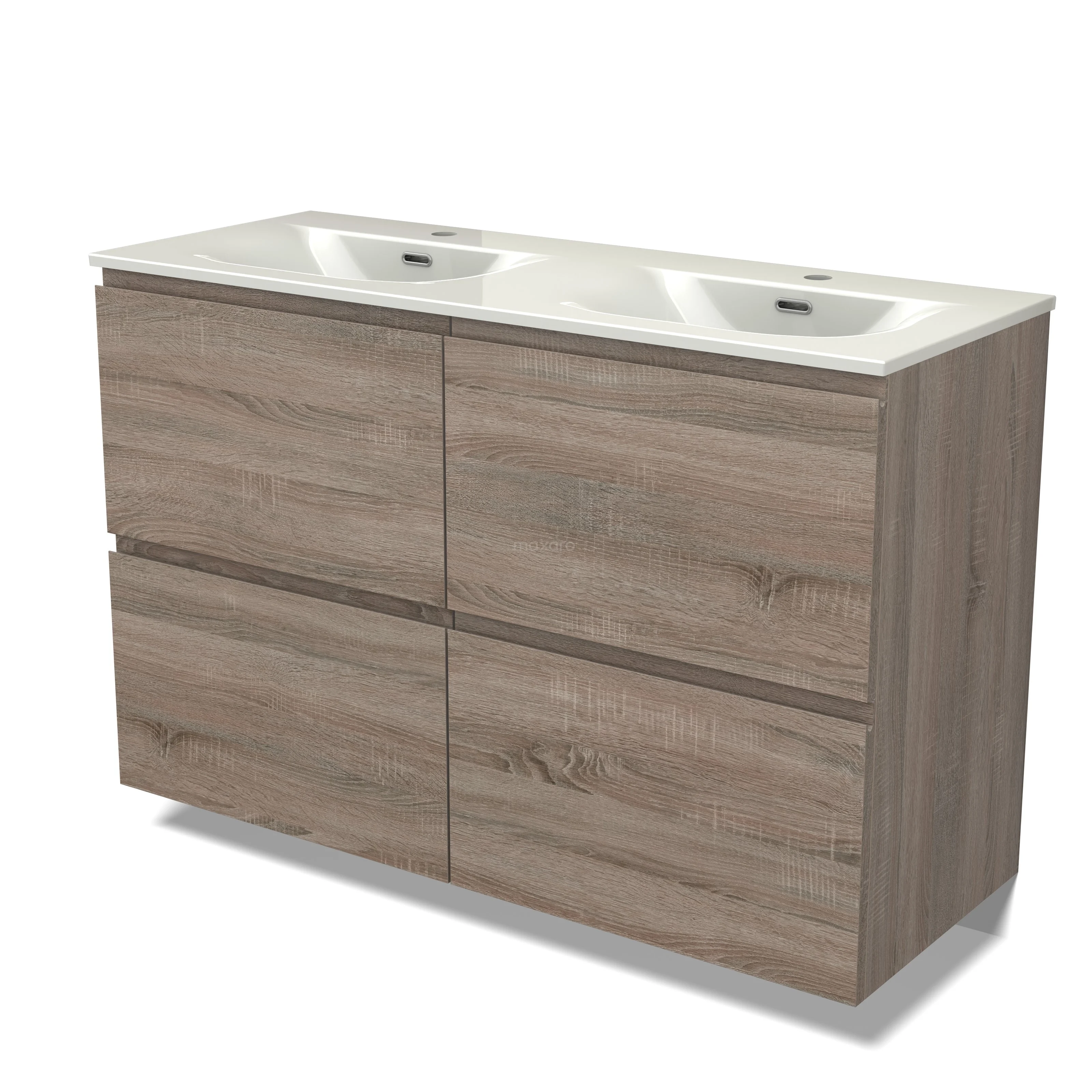 Modulo Waschtische | 120 cm Eiche Grifflos front Keramik 4 hohe Schubladen