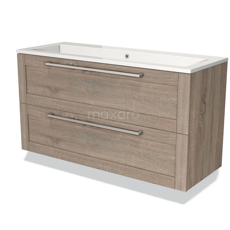 Modulo Waschtische | 120 cm Eiche Rahmen front Mineralguss 2 übereinanderliegende Schubladen