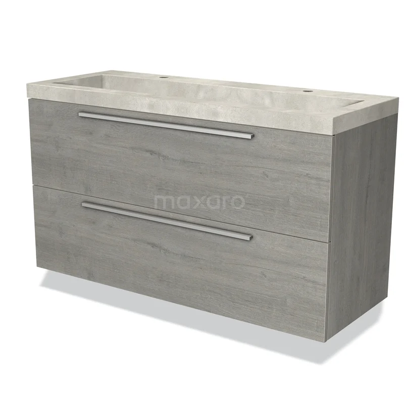 Modulo Waschtische | 120 cm Graue Eiche Flach front Beton 2 übereinanderliegende Schubladen