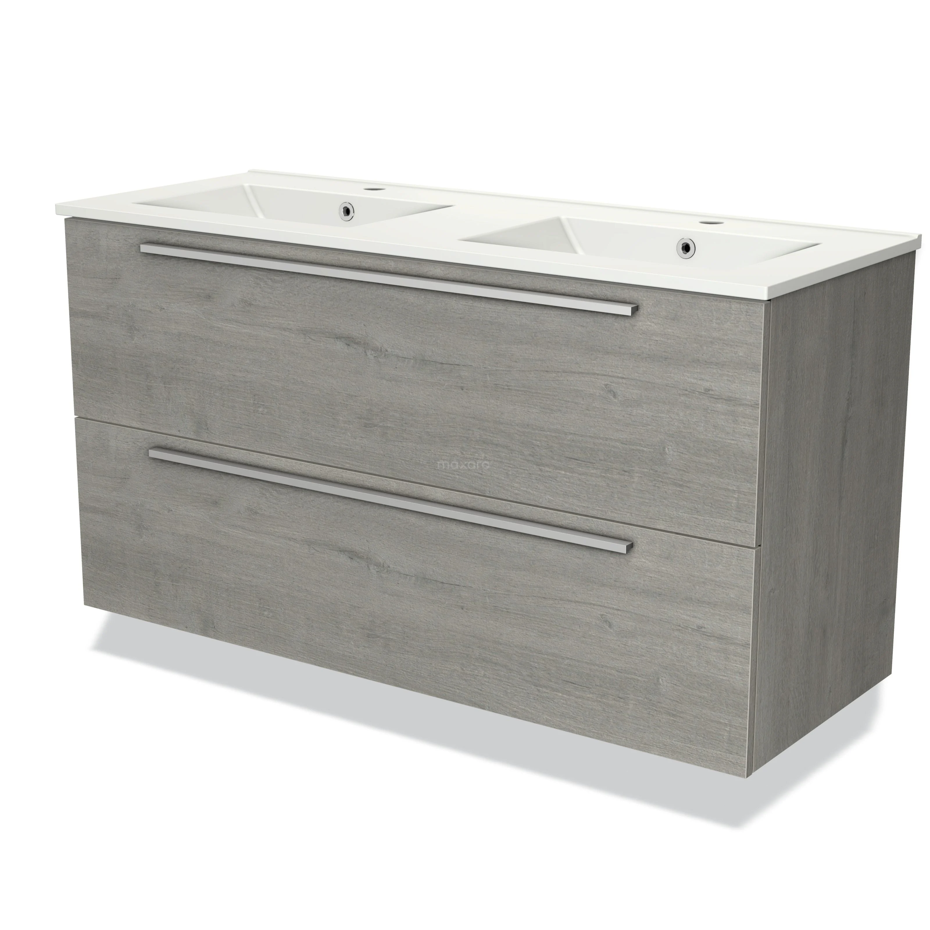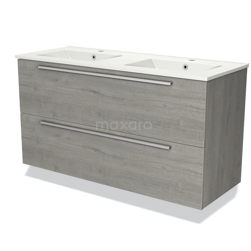 Modulo Waschtische | 120 cm Graue Eiche Flach front Keramik 2 übereinanderliegende Schubladen