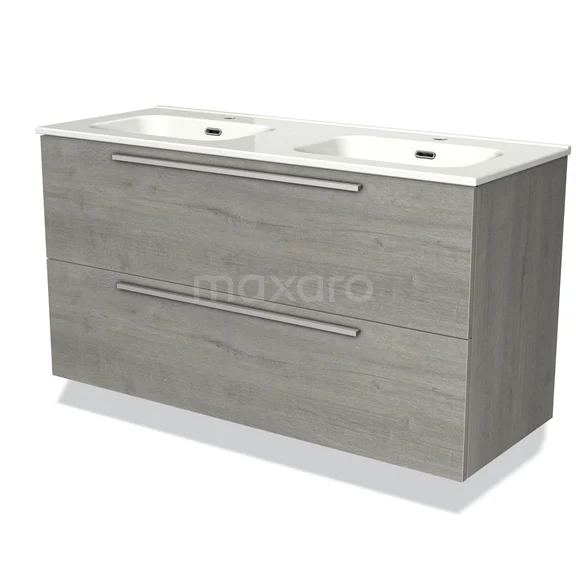 Modulo Waschtische | 120 cm Graue Eiche Flach front Keramik 2 übereinanderliegende Schubladen