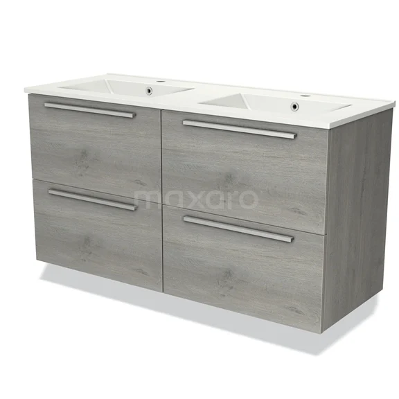 Modulo Waschtische | 120 cm Graue Eiche Flach front Keramik 4 Schubladen