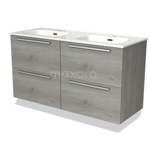 Modulo Waschtische | 120 cm Graue Eiche Flach front Keramik 4 Schubladen