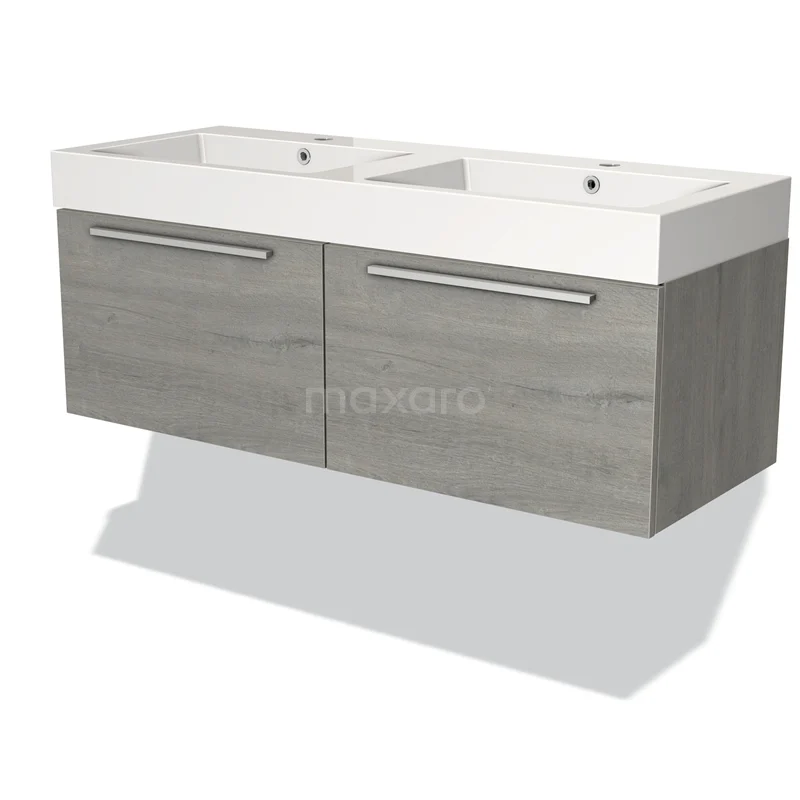 Modulo Waschtische | 120 cm Graue Eiche Flach front Mineralguss 2 nebeneinanderliegende Schubladen